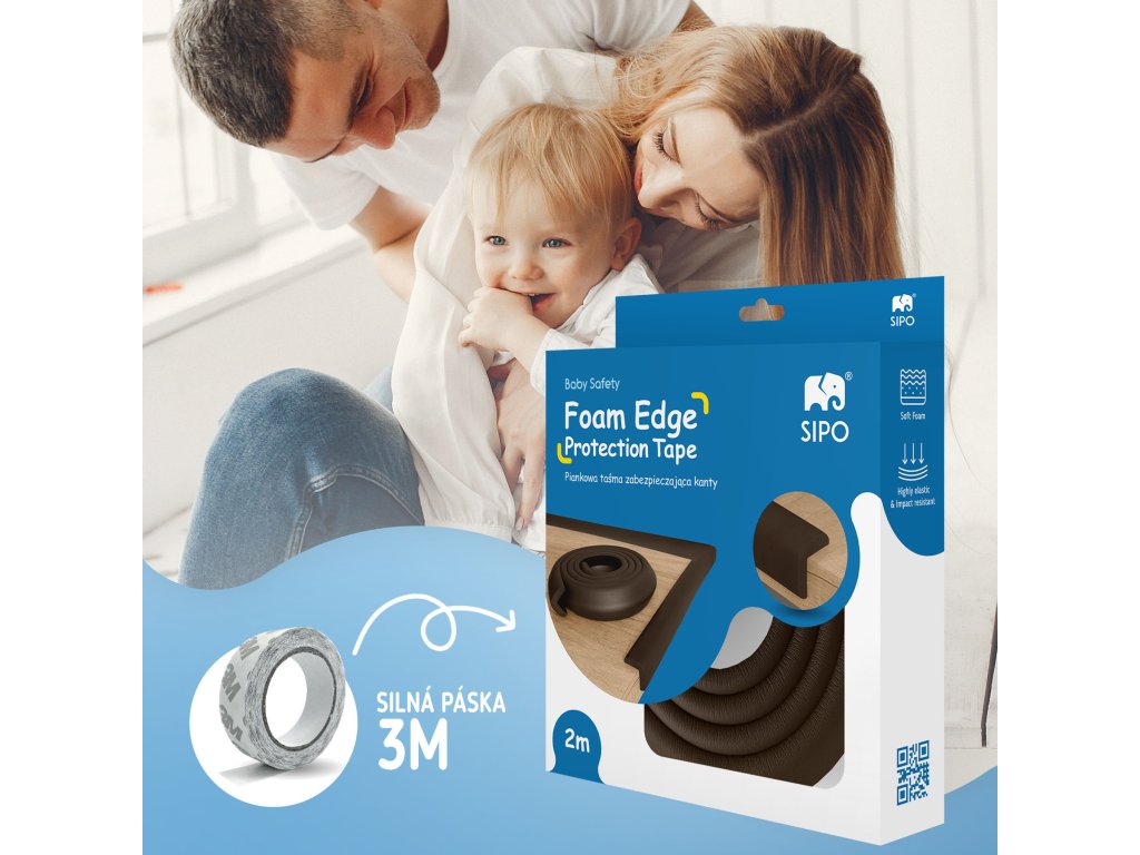 Penová ochranná páska Sipo na ostré hrany a rohy, ktoré by mohli spôsobiť zranenie. Vysokokvalitný penový materiál umožňuje dostatočnú ochranu dieťaťa pred zranením v prípade nárazu. Ochrana ostrých hrán a rohov je veľmi užitočná bezpečnostná pomôcka najmä pre malé deti, ktoré sa učia chodiť a behať. Deti často omylom narazia do nábytku, čo môže mať za následok bolestivé modriny alebo zranenia. Ochranné pásky na hrany nábytku takýmto zraneniam zabraňujú tým, že tlmia nárazy.