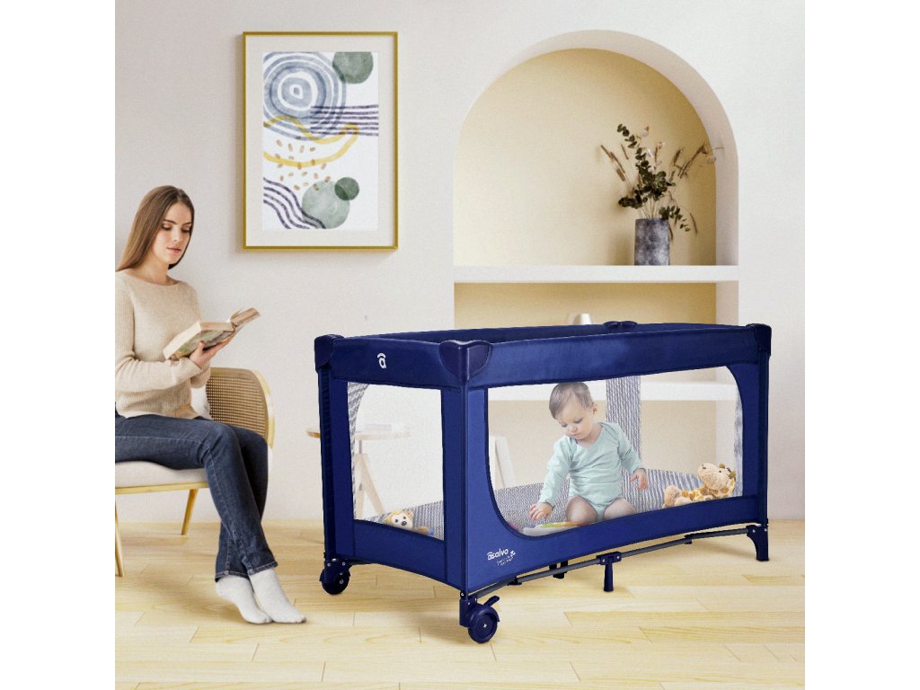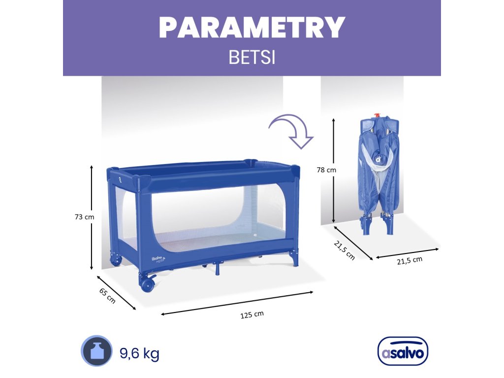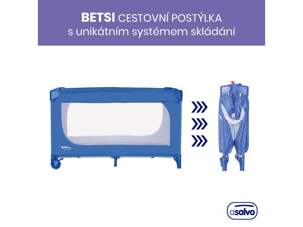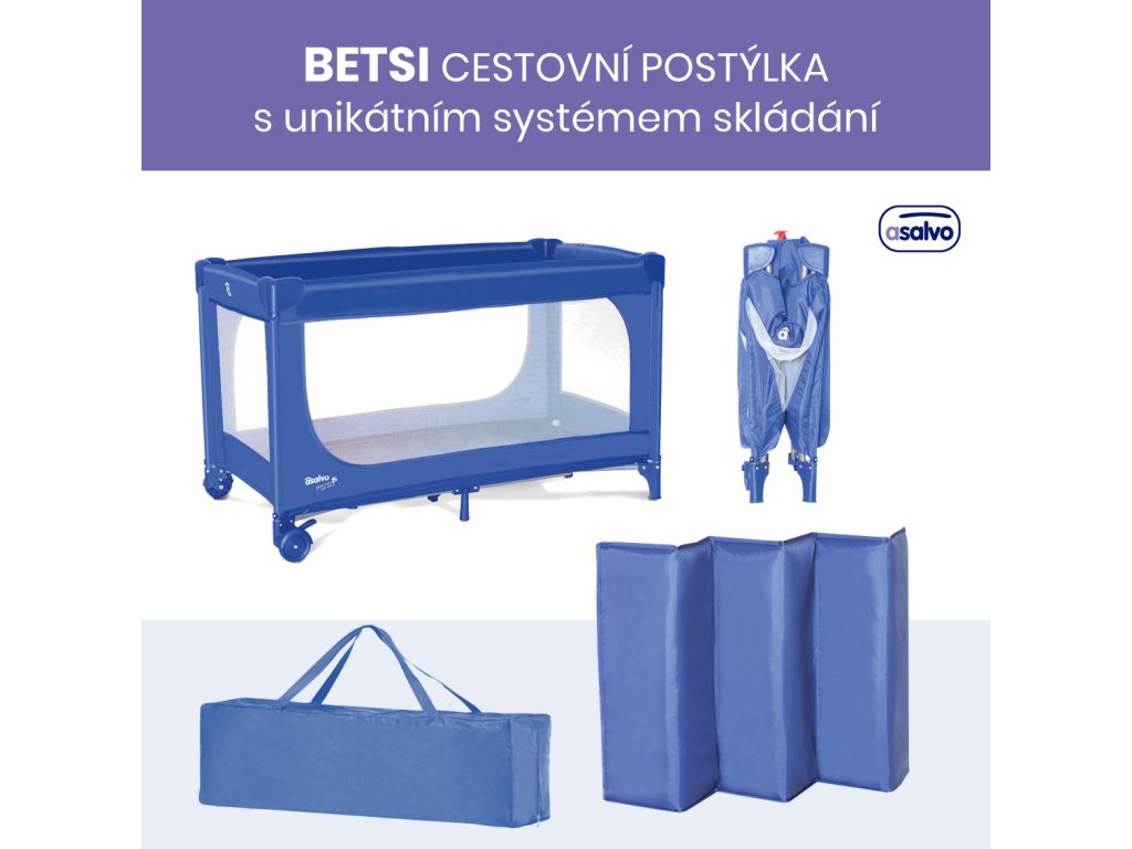 Asalvo BETSI cestovná postieľka s jedinečným systémom skladania ULTRA-FAST, blue