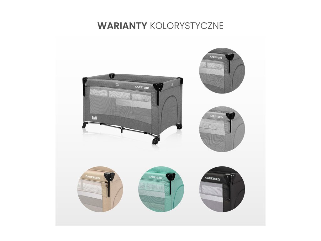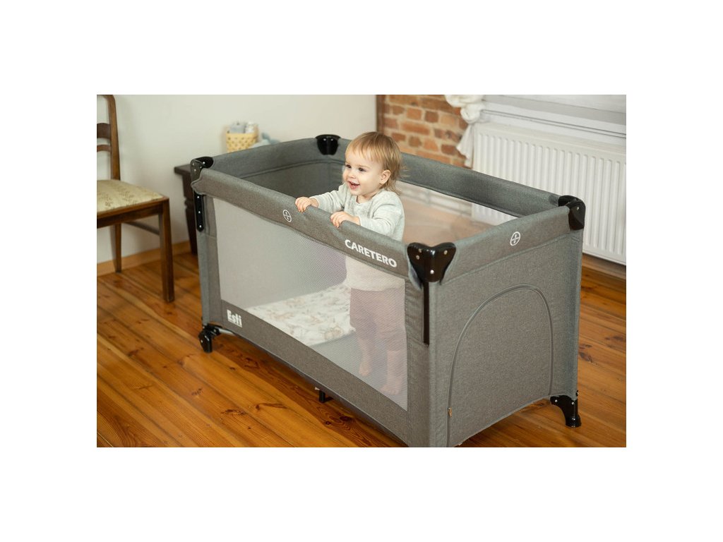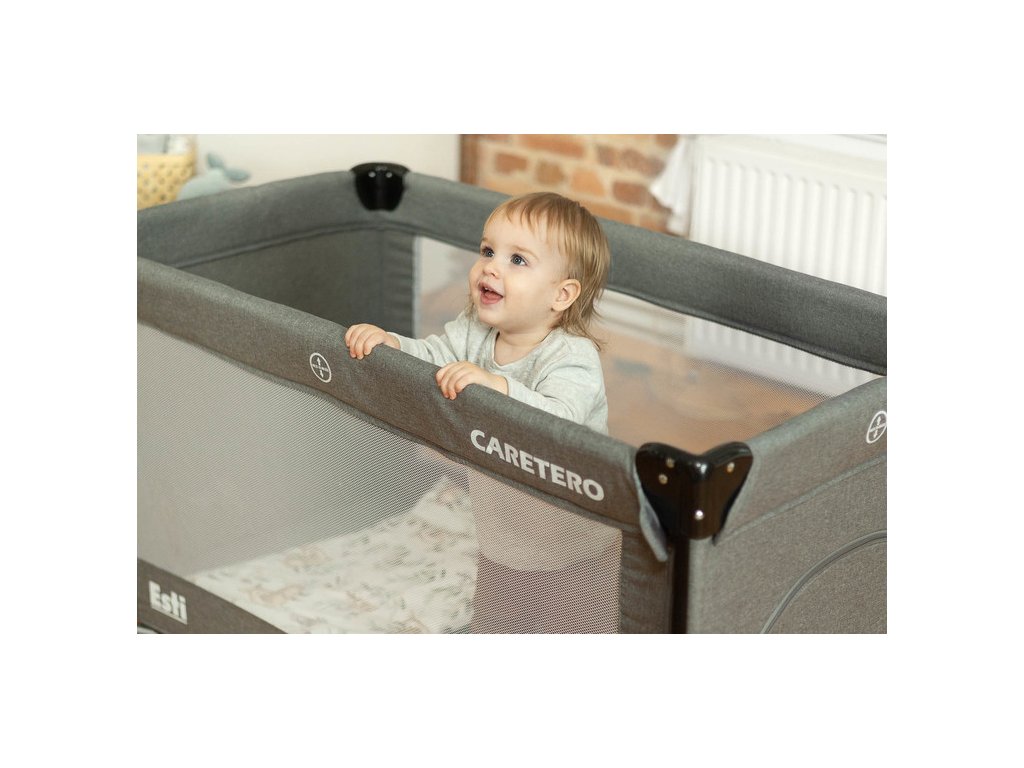 Postieľka Esti je cestovná postieľka určená na uľahčenie starostlivosti o bábätká. Jej najväčšou výhodou je skladacia bočnica, ktorá premení postieľku na prístelku a poskytne pohodlnejší prístup dieťaťu. Praktický skladací mechanizmus znamená, že zloženie alebo rozloženie trvá len chvíľku. Postieľka má tiež kolieska s blokádou pre jednoduché prenášanie. Bočné dvierka uzavreté zipsom umožnia starším deťom bezpečne vstúpiť do postieľky, ktorú možno použiť ako ohrádku. Postieľka spĺňa normu EN 716: 2017-07.