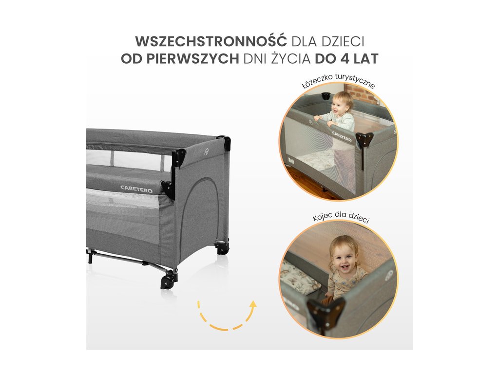 Slúži súčasne ako postieľka, ohrádka a cestovná postieľka, určená pre deti od prvých dní života do 4 rokov alebo s hmotnosťou do 15 kg. Vďaka nastaviteľnej výške podlahy sa postieľka ľahko prispôsobí potrebám dojčaťa. Funguje ako postieľka a ako dieťa rastie, stáva sa bezpečným miestom na hranie v domácom prostredí.