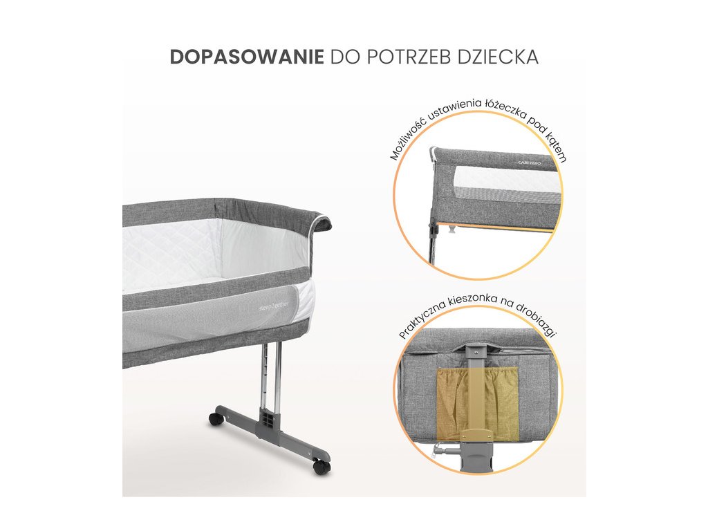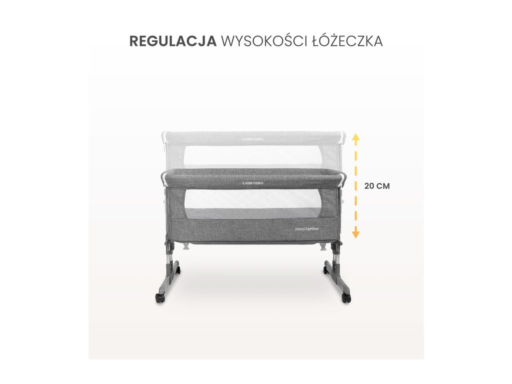 Sleep2gether je našou odpoveďou na rastúce potreby a očakávania rodičov. Sleep2gether sa dá použiť ako samostatná postieľka, ale po odstránení prednej steny sa stane ešte pohodlnejšou. Sleep2gether sa dá použiť aj na boku postele pre dospelých. To umožňuje kŕmiť a dojčiť dieťa bez toho, aby ste museli opustiť posteľ. Ľahká hmotnosť a integrované kolieska zvyšujú mobilitu, zatiaľ čo mechanizmus nastavenia výšky umožňuje rýchle a jednoduché nastavenie. Postieľku je možné nastaviť aj pod uhlom, aby sa dieťa lepšie uspalo a zabránilo sa pľuvaniu.