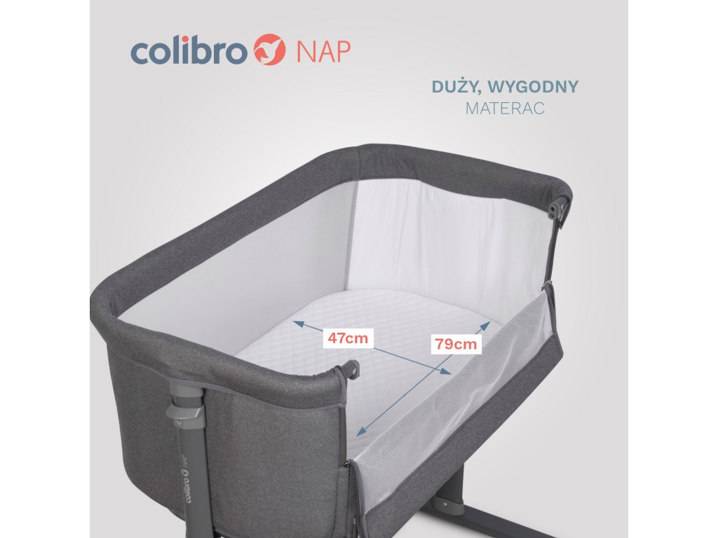 Prenosná postieľka Colibro Nap je ideálnym riešením pre rodičov, ktorí hľadajú flexibilitu a bezpečnosť pri spaní svojho dieťaťa. Táto postieľka slúži ako klasická detská postieľka aj ako prídavná postieľka k lôžku rodičov, čo umožňuje dieťaťu nocovať v blízkosti rodičov v pohodlí a bezpečí.