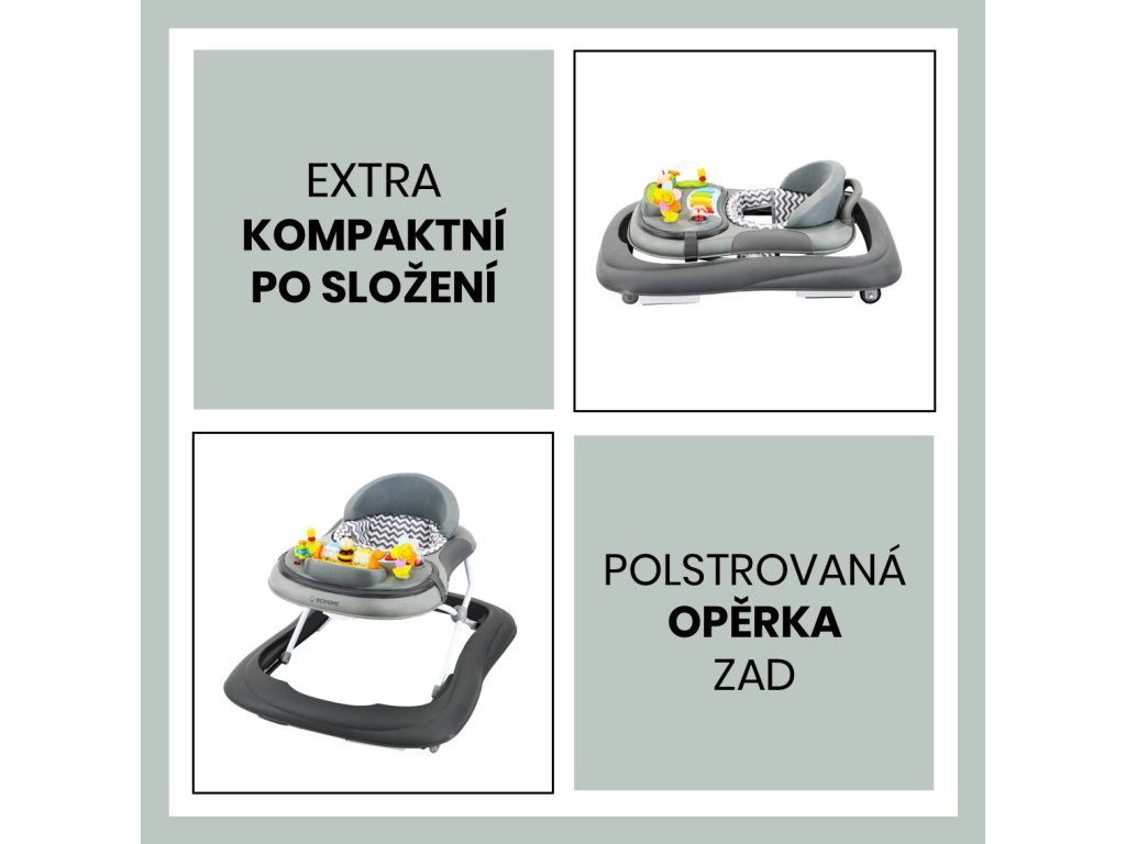 VAROVANIE: Chodák je určený pre deti, ktoré vedia sedieť bez pomoci, približne od veku 6 mesiacov. Nie je určené pre deti, ktoré vedia chodiť samé alebo ktorých hmotnosť je väčšia ako 12 kg! Nikdy nenechávajte dieťa bez dozoru! Vždy zabráňte prístupu k schodom, schodíkom alebo iným nerovným plochám. V súlade s normou EN1273:2020+A1:2023 & EN 71-1-2-3.