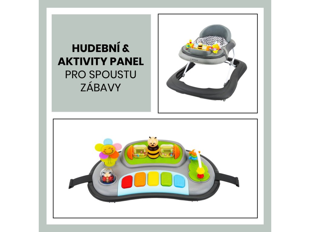 Súčasťou chodítka je hudobné aktivity panel, ktorý rozvíja sluchové, hmatové a koordinačné zručnosti dieťaťa.