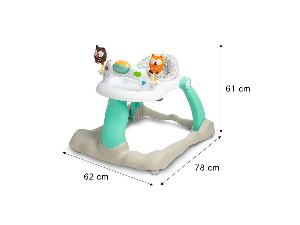 OWLS je detské chodítko vytvorené pre aktívne a zvedavé najmenšie ratolesti. Chodítko podporuje dieťa v učení sa prvých krokov a povzbudzuje ho k hre. Charakteristické plyšové sovy určite zaujmú malé batoľatá a upútajú ich pozornosť. Panel chodítka má navyše veľké, farebné tlačidlá, ktoré aktivujú 8 rôznych melódií. OWLS je vybavené funkciou zmeny výšky sedadla, ktorá môže byť 22 cm alebo 27 cm nad zemou, čím sa prispôsobí aktuálnej výške dieťaťa. Chodítko je vyrobené z vysoko kvalitných materiálov, ktoré zaisťujú odolnosť a bezpečnosť používania.