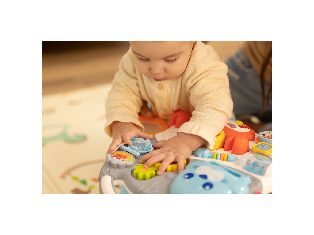Vďaka funkcii chodítka môže bábätko bezpečne robiť prvé kroky a vstavaný vzdelávací stolík je skvelý spôsob, ako objaviť nové zručnosti. Možnosť nastaviť výšku riadidiel podľa výšky dieťaťa poskytuje väčšiu stabilitu a pohodlie pri učení sa chôdze.