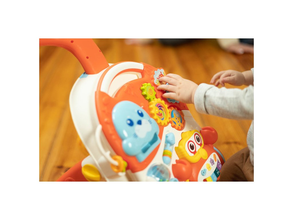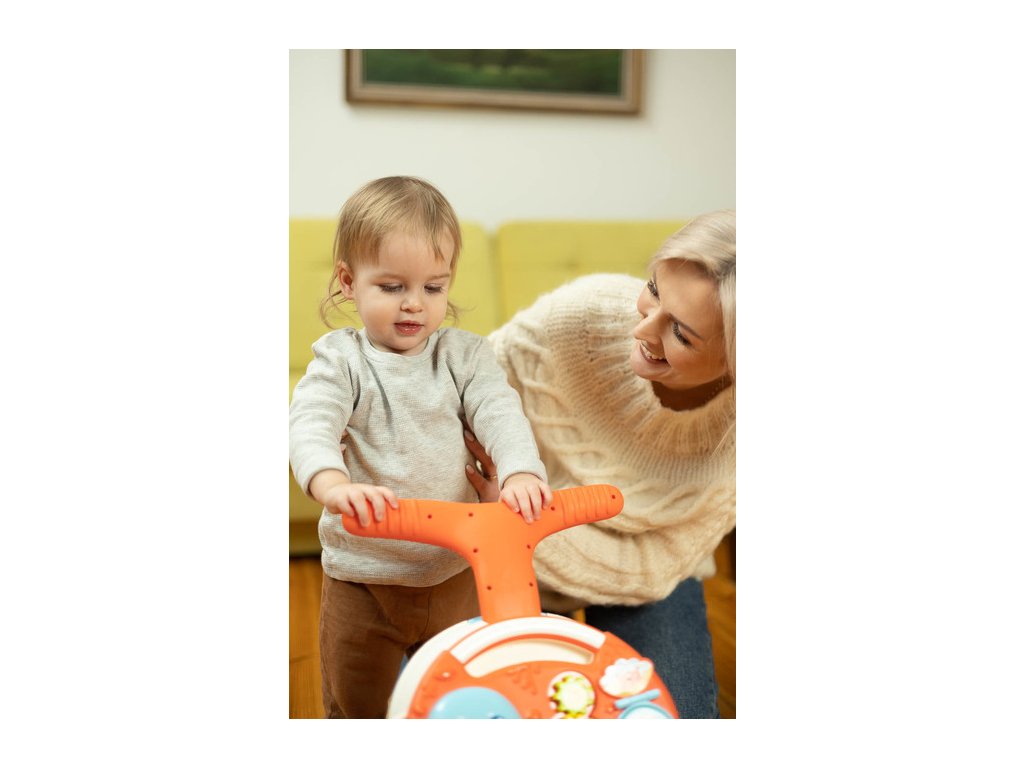 BEZPEČNOSŤ NA PRVOM MIESTEHračka je vyrobená z bezpečných a odolných materiálov, ktoré zaisťujú stabilitu a pohodlie počas hry. Pohodlný dizajn umožňuje dieťaťu robiť prvé kroky ľahko a stabilne a zadné kolieska s aretáciou zaisťujú bezpečnosť pri hraní s interaktívnymi hračkami. |