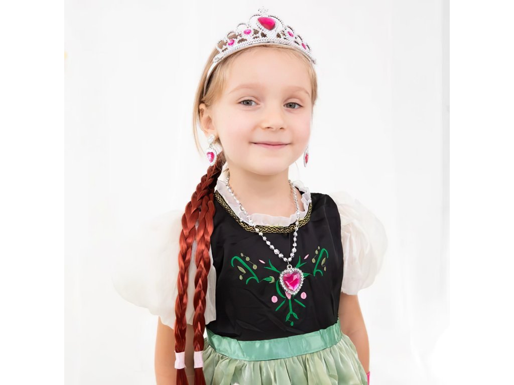 Vstúpte do kúzelného sveta rozprávky Frozen s našou úžasnou sadou doplnkov Anny. Táto sada obsahuje všetko, čo vaše malé princezné potrebujú na to, aby sa stali časťou tejto nezabudnuteľnej rozprávky. Sada zahŕňa elegantné vrkôčiky, ktorý im umožní pretvoriť sa na princeznú Ľadového kráľovstva, krásnu korunku, ktorá dodá ich vzhľadu nádych kráľovského pôvabu, a žezlo s krásnym ružovým diamantom v tvare srdca.