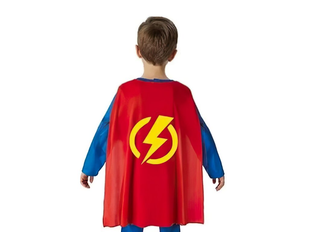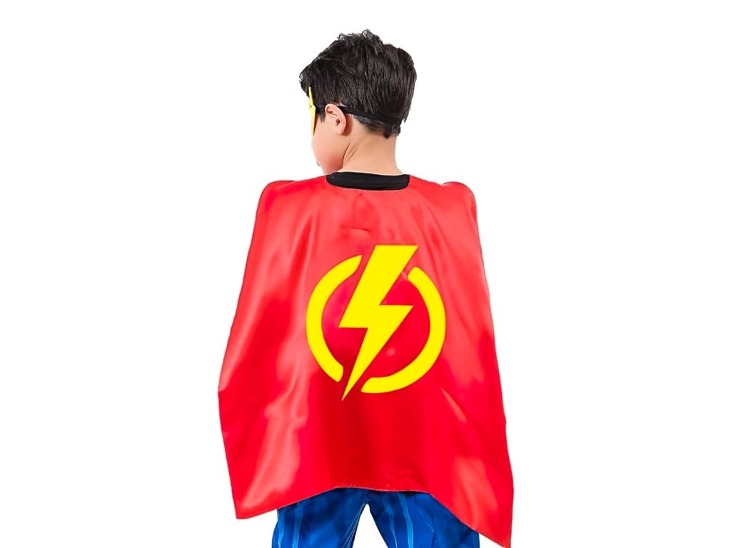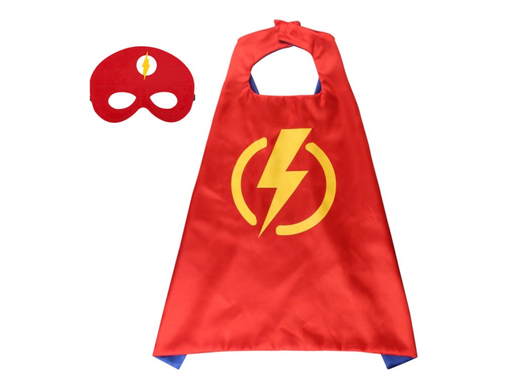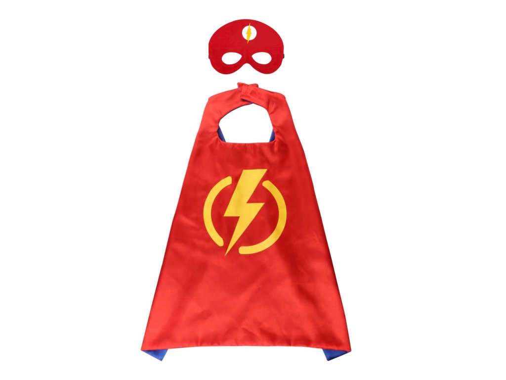 Súprava obsahuje červený plášť so žltým symbolom blesku a červenú masku s motívom blesku, vďaka čomu sa deti ľahko prenesú do sveta hrdinských dobrodružstiev.