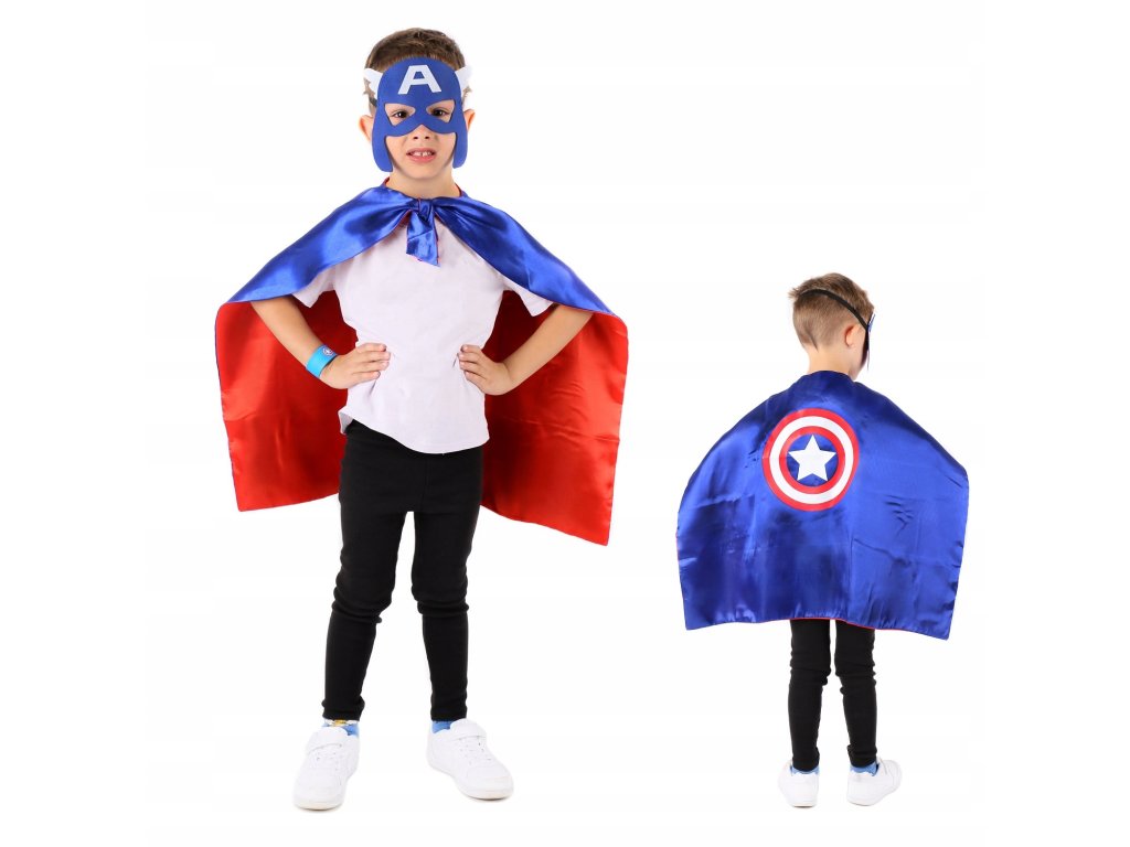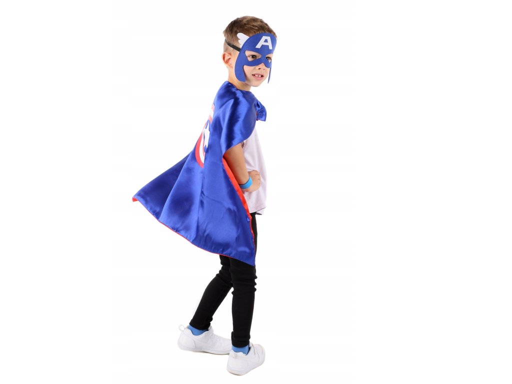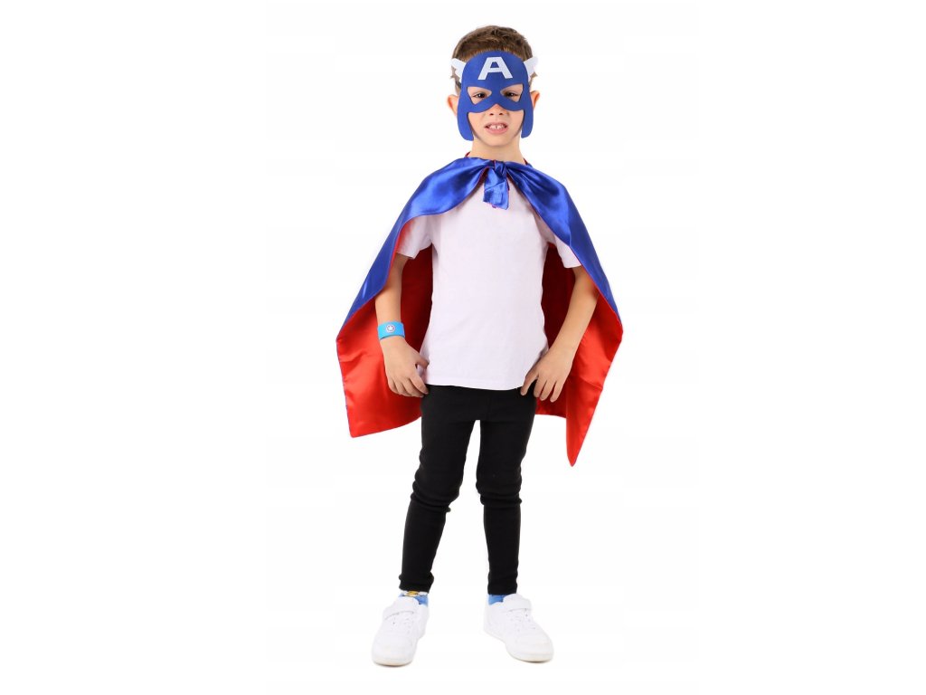 Maska, ktorá je súčasťou kostýmu, je navrhnutá tak, aby verne napodobnila vzhľad Kapitána Ameriky. Je ľahká, mäkká a ľahko prispôsobiteľná, takže dobre sedí na tvári bez nepohodlia. Elastický pásik drží masku pevne na mieste, bez toho aby skĺzla, čo umožňuje deťom naplno sa ponoriť do role tohto hrdinu a užiť si dobrodružstvá s maximálnym komfortom. Maska dopĺňa plášť a vytvára kompletný vzhľad pripravený na každú tematickú akciu.
