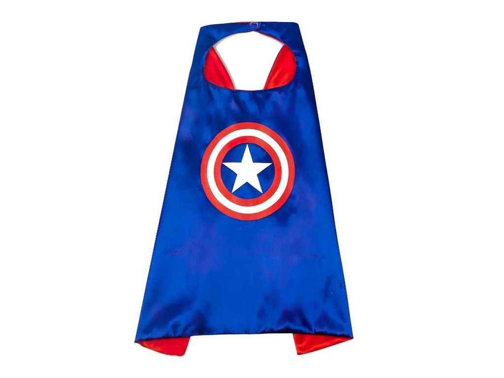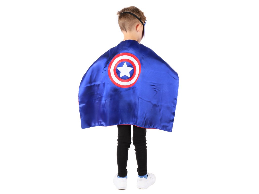 Plášť je vyrobený z lesklého saténu, ktorý je príjemný na dotyk a pohodlný na nosenie. Jeho modro-červené prevedenie pôsobí dynamicky a živo, zatiaľ čo veľký motív ikonického hviezdneho štítu na chrbte dodáva kostýmu autentický vzhľad. Plášť je vybavený suchým zipsom pri krku, čo uľahčuje jeho obliekanie aj vyzliekanie, a to behom pár sekúnd. Saténový materiál dodáva kostýmu žiarivý lesk, ktorý pritiahne pozornosť a zároveň zaisťuje, že sa dieťa bude cítiť pohodlne aj pri dlhodobom nosení.