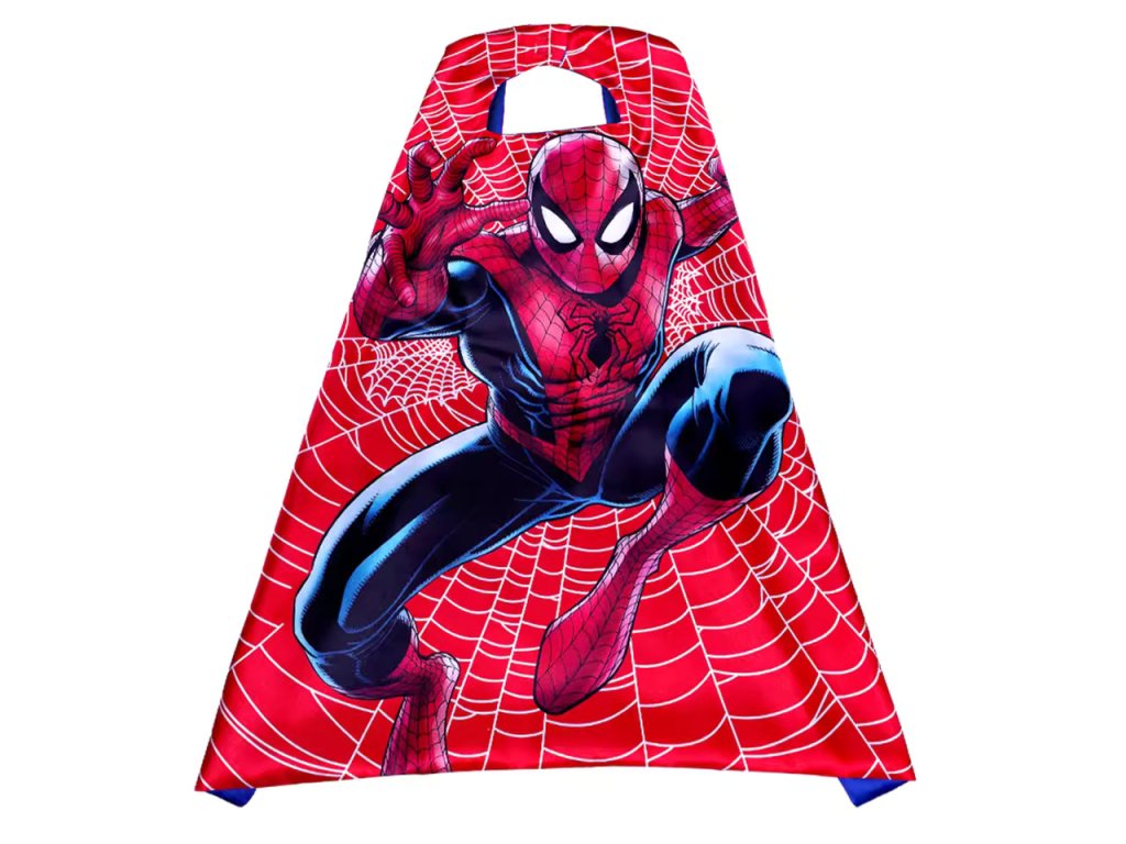 Kostým zahŕňa červený plášť s výraznou potlačou Spidermana priamo v akcii na chrbte a červenú masku, ktorá dokonale dopĺňa vzhľad obľúbeného superhrdinu. Deti si môžu ľahko predstaviť, ako lezú po stenách a bojujú proti zlu, rovnako ako ich komiksová a filmová ikona.