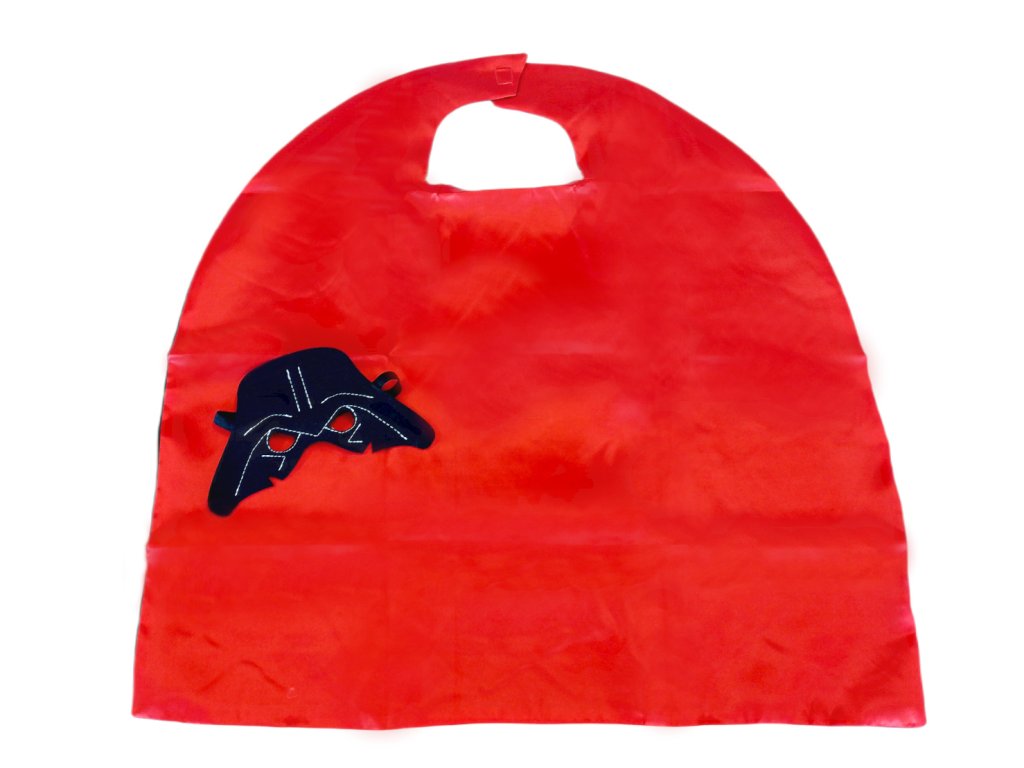 Kostým je vyrobený z ľahkého, lesklého polyesteru, ktorý je príjemný na dotyk a zároveň odolný voči poškodeniu pri hrách a vystrájaní. Maska je z mäkkého plsti a drží pomocou pružnej gumičky, ktorá zabezpečuje pohodlné nosenie bez otlakov.