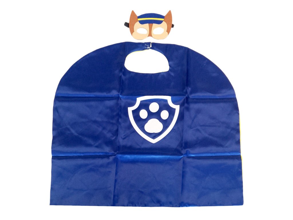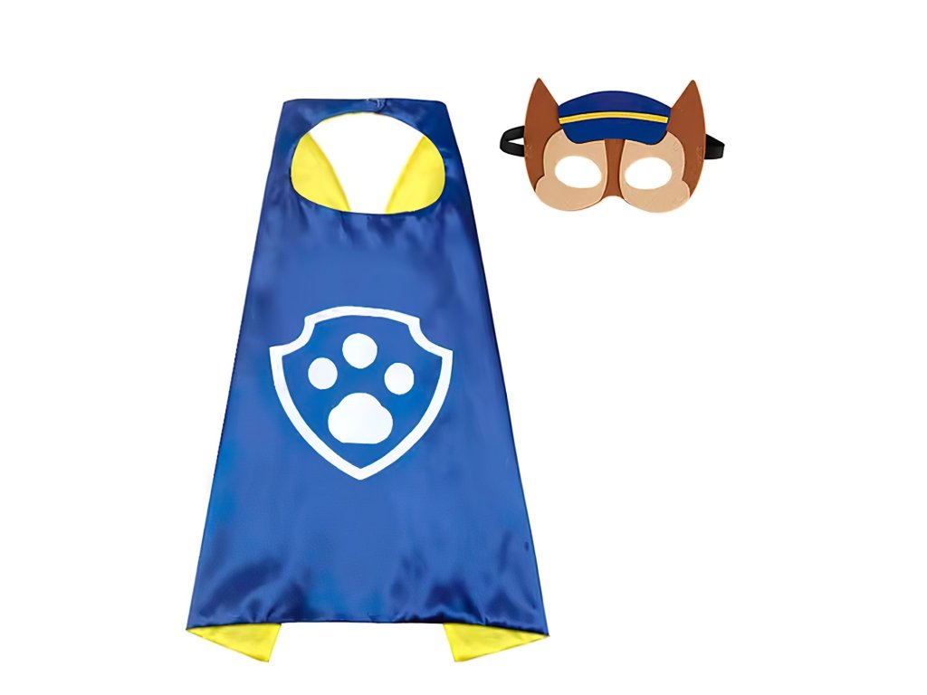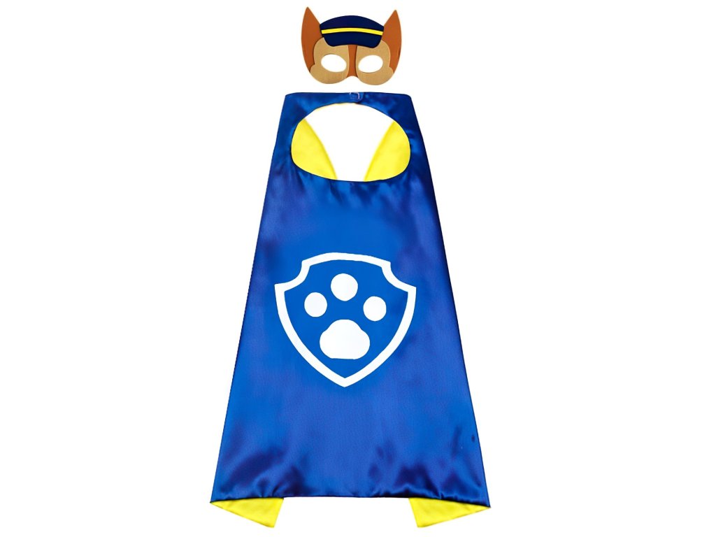 Plášť je navrhnutý tak, aby presne zodpovedal postave Chase – modrá policajná farba, výrazný znak na chrbte a maska s ušami vytvoria dokonalú ilúziu skutočného psieho strážcu.
