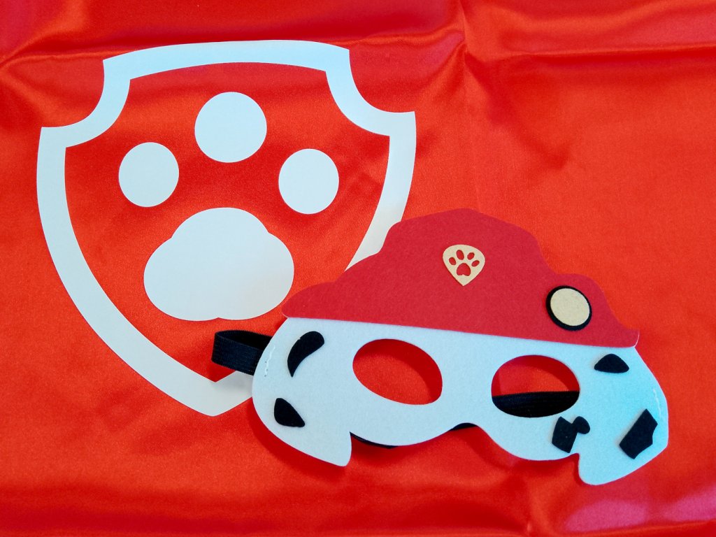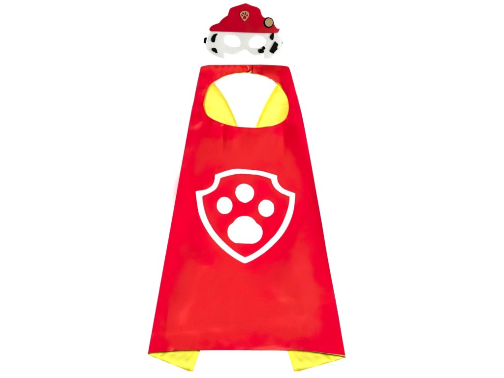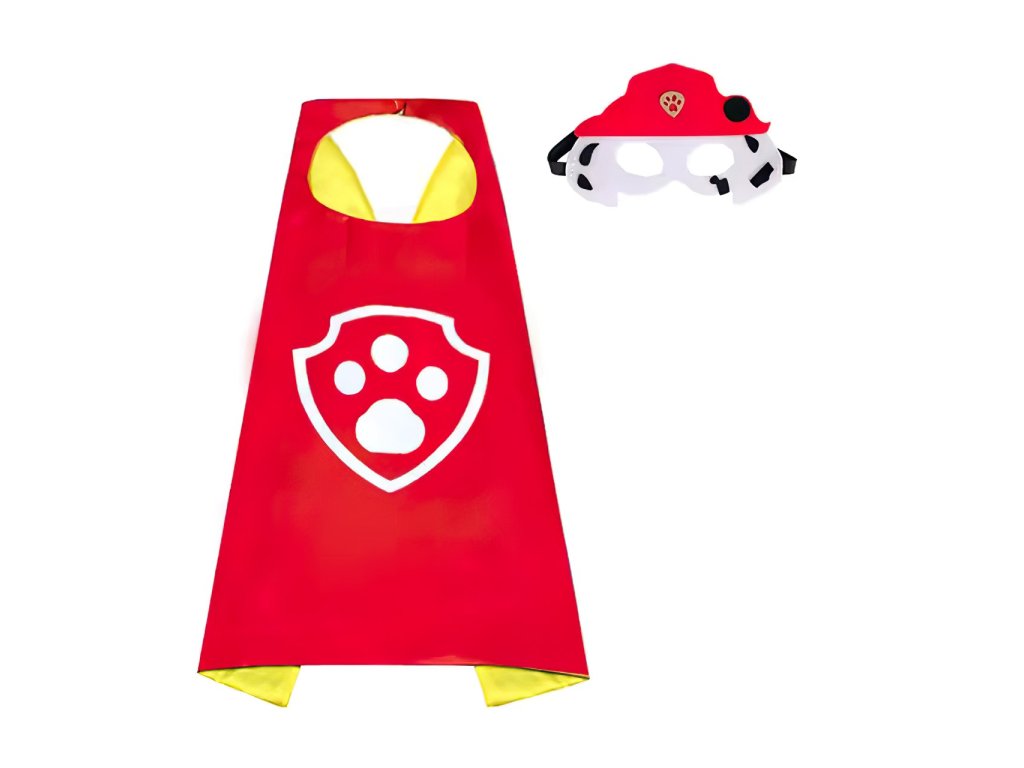 Súprava obsahuje červený plášť s logom Labkovej patroly a štýlovú masku, ktorá pripomína hasičskú prilbu a biele chĺpky Marshalla – dalmatína, ktorý je vždy pripravený pomáhať.