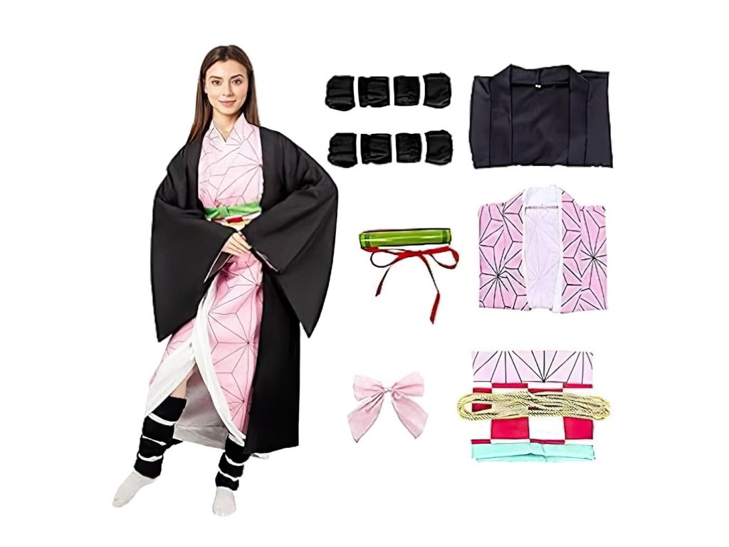 Kostým obsahuje kimono v ružovej farbe s geometrickým vzorom, ktoré je charakteristickým prvkom Nezuko a dodáva kostýmu tradičný vzhľad. Čierny plášť s dlhými rukávmi, ktorý dopĺňa celý outfit a zaisťuje verný dojem z postavy. Ďalej je súčasťou ozdobný pás a ďalšie doplnky, vrátane kolíka na ústa, ktoré sú pre Nezuko ikonické, pretože jej umožňujú kontrolovať jej démonickú povahu.