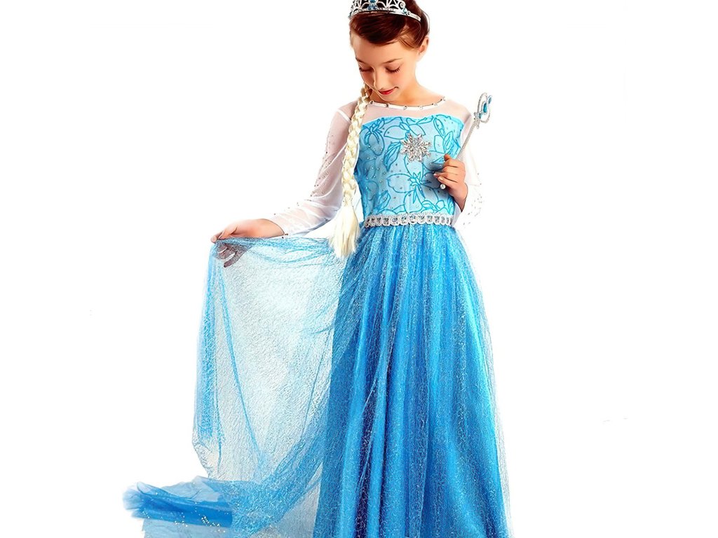Detský karnevalový kostým Elsa s flitrami. Šaty kostýmu sú zdobené flitrami, ktoré vytvárajú nádherný odlesk na šatách a dlhými ľahkými rukávmi. Doplnky, ktoré dotvoria celkový vzhľad, zaručia pôvab každej malej kráľovnej. Nechajte svoju malú princeznú zažiť mágiu s kúzelným detským karnevalovým kostýmom Elsy z filmu Ľadové kráľovstvo.