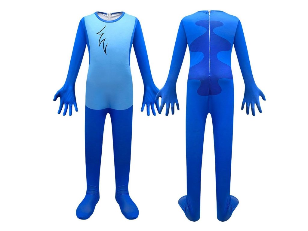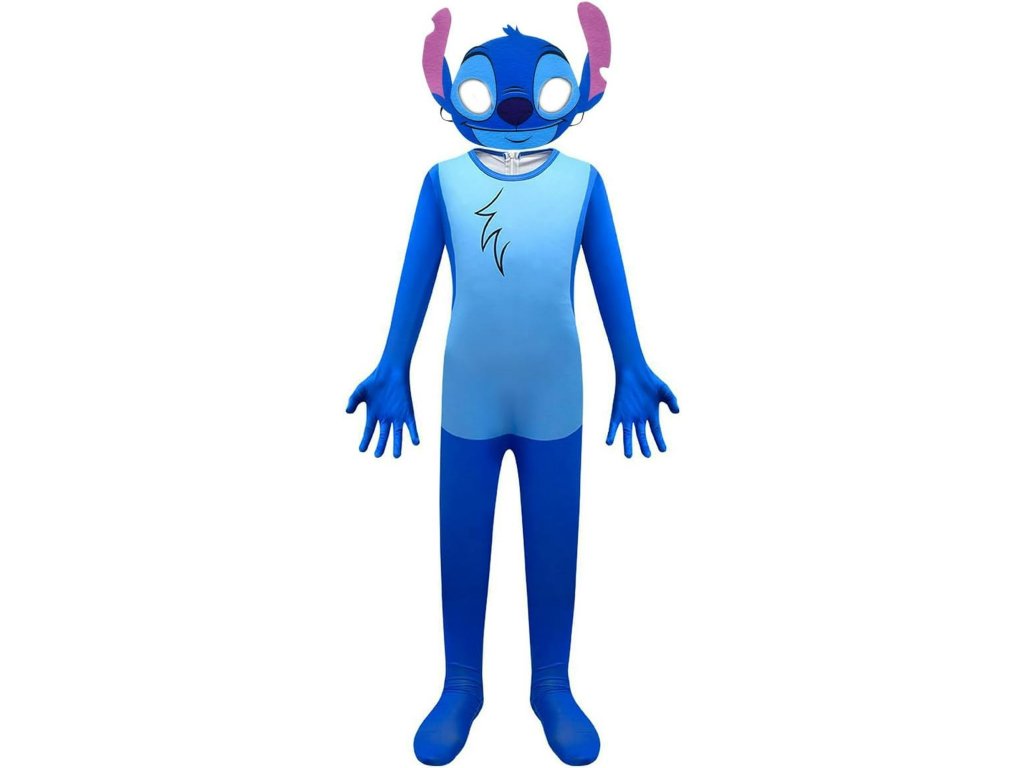 Kostým je vyrobený z príjemného elastického materiálu, ktorý sa prispôsobí tvaru tela a umožňuje maximálnu voľnosť pohybu. Celotelový overal v typických odtieňoch modrej farby verne zachytáva vzhľad Stitche, vrátane detailov, ako je tmavší modrý "prúžok" na hrudi, ktorý pripomína charakteristické rysy tejto postavy. Tento materiál je mäkký na dotyk, čo zaisťuje pohodlie aj počas dlhšieho nosenia, napríklad na karnevaloch alebo tematických oslavách.