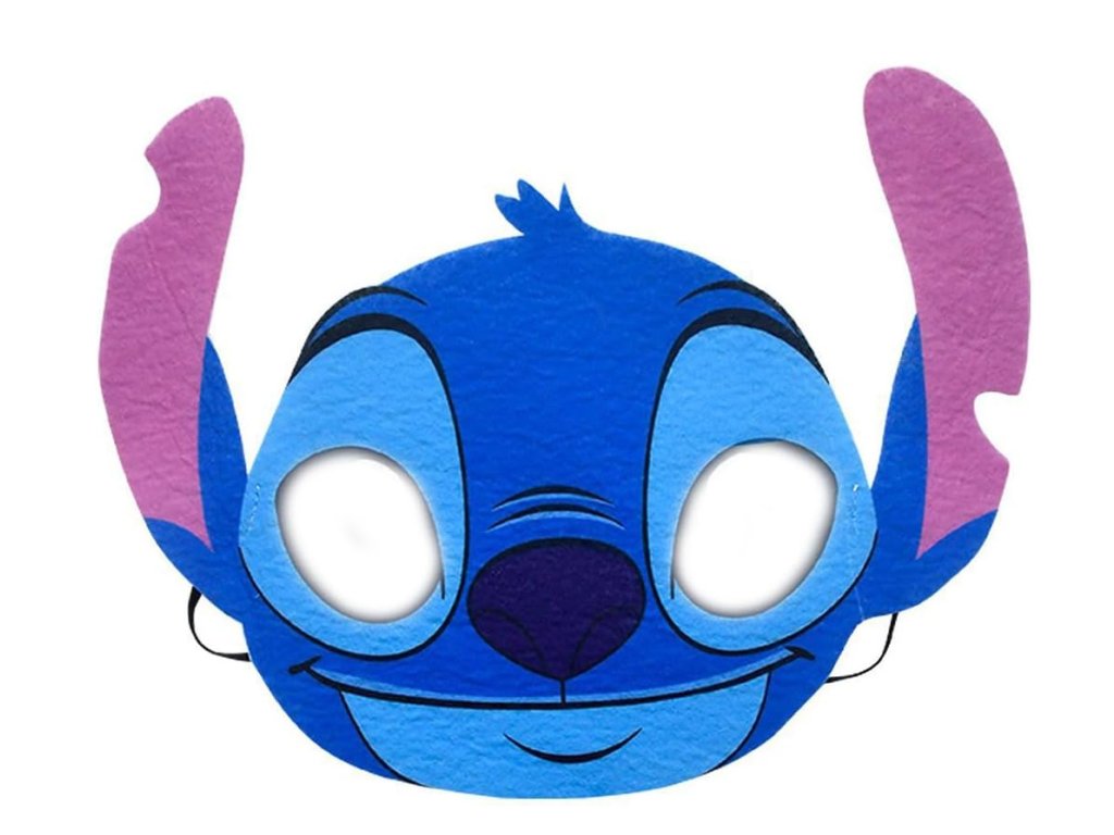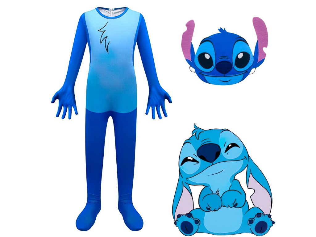 Hlavným prvkom kostýmu je maska Stitche, ktorá je súčasťou outfitu. Maska dokonale vystihuje jeho výraznú tvár s veľkými očami a ikonickými ušami. Je navrhnutá tak, aby bola ľahká a pohodlná na nosenie, a pritom zostávala pevne na mieste. Vďaka otvorom pre oči môžu deti bez problémov vidieť a užívať si svoju hru, zatiaľ čo si udržiavajú kompletný vzhľad postavy.