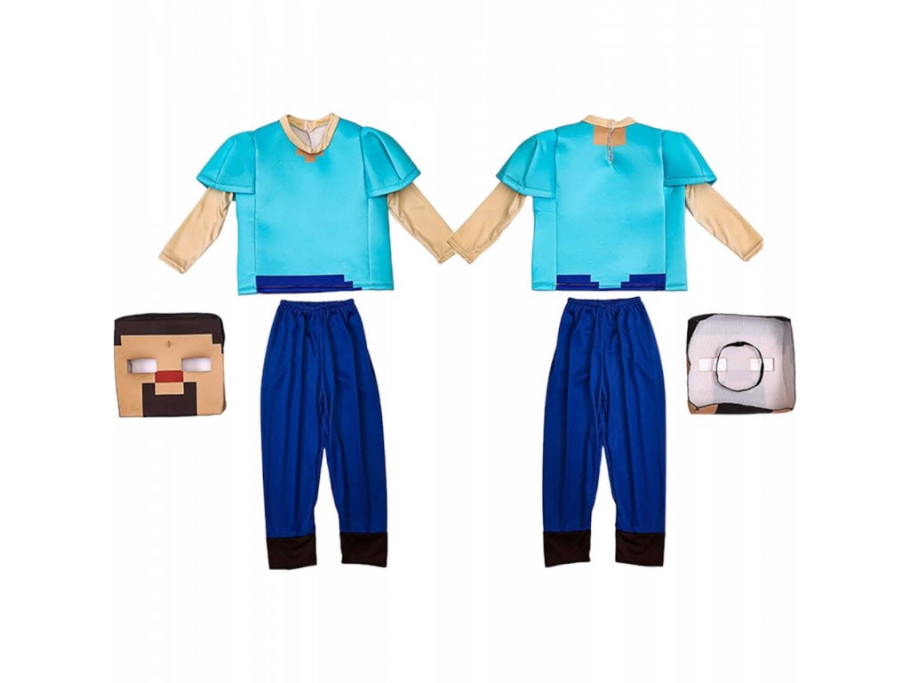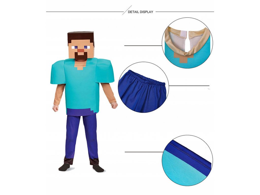 Kostým je vyrobený z kvalitných materiálov, čo zaisťuje pohodlné nosenie a odolnosť. Kockované tričko a modré džínsové nohavice sú pevné a dobre sadnú, čo vám umožní pohybovať sa s ľahkosťou a pohodlím. S týmto kostýmom budete nielen vyzerať ako Steve, ale budete sa cítiť skvele a pripravení na dobrodružstvo vo svete Minecraftu.