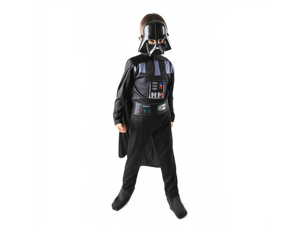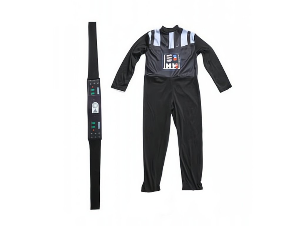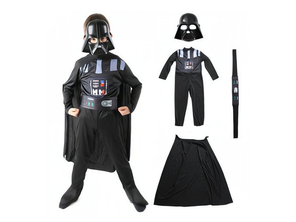 Kostým sa skladá z niekoľkých detailne prepracovaných častí, ktoré zaisťujú autentický vzhľad. Hlavnou časťou je čierny overal, ktorý je pohodlný a umožňuje voľný pohyb. Tento overal je doplnený pásom, ktorý má na sebe vyobrazené ovládacie prvky Darth Vaderovho ikonického životného podporného systému. Plášť, ktorý sa voľne splýva cez ramená, dodáva kostýmu dramatický vzhľad a zdôrazňuje temnú a hrozivú prítomnosť tohto sithského lorda. Súčasťou kostýmu je aj detailná plastová maska, ktorá verne zobrazuje strašidelnú prilbu Darth Vadera. Maska zakrýva celú hlavu a tvár, čím dokonale dopĺňa vzhľad postavy a umožňuje dieťaťu naplno sa vžiť do úlohy tohto temného rytiera. Celkový dizajn kostýmu je zameraný na to, aby čo najvernejšie napodobnil vzhľad postavy z filmov, vďaka tomu je kostým vhodnú voľbu pre malých fanúšikov série Star Wars.