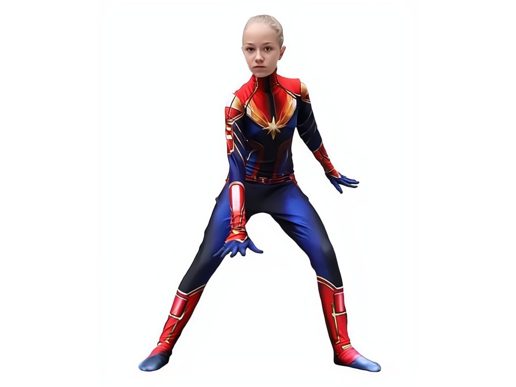 Detský kostým Captain Marvel inšpirovaný hrdinkou Captain Marvel z populárneho filmového sveta, nadchne všetkých malých fanúšikov akčných príbehov. Detailná potlač v typických farbách červenej, modrej a zlatej verne kopíruje vzhľad filmového obleku a dodáva kostýmu autentický vzhľad skutočnej superhrdinky.