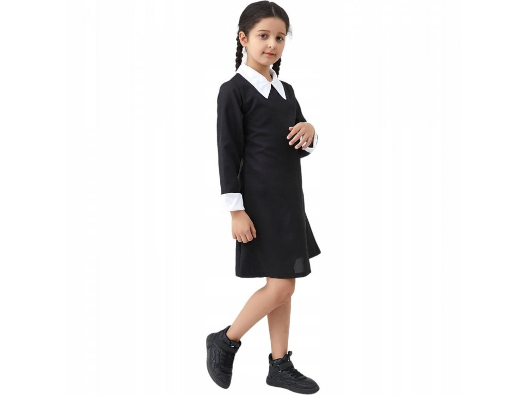 Tento kostým je skvelou voľbou pre detské karnevaly, Halloween, alebo akúkoľvek inú udalosť. Kostým je jednoduchý, ľahký, v klasickom čierno-bielom prevedení s golierom. Vďaka kvalitnému spracovaniu a pohodlným materiálom bude vaše dieťa v tomto kostýme vyzerať a cítiť sa skvele. Za originálnu premenu do jednej z najznámejších postáv z kultovej Adamsovej rodiny - Wednesday, iste dieťa získa veľa chvály.
