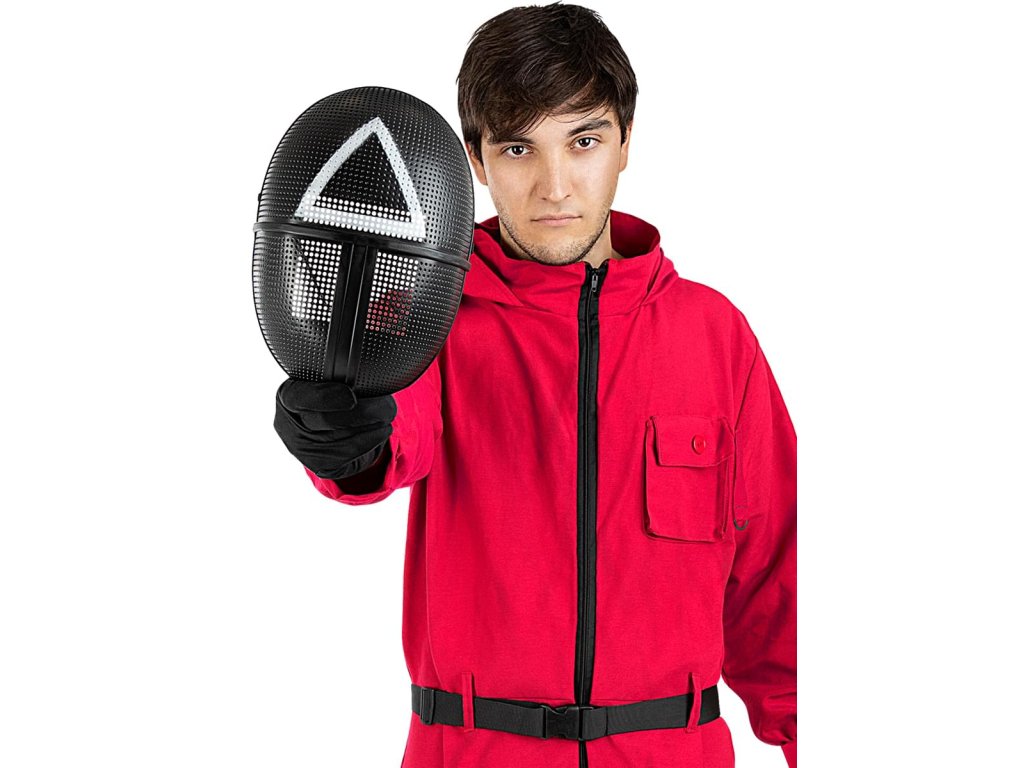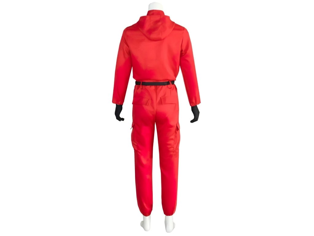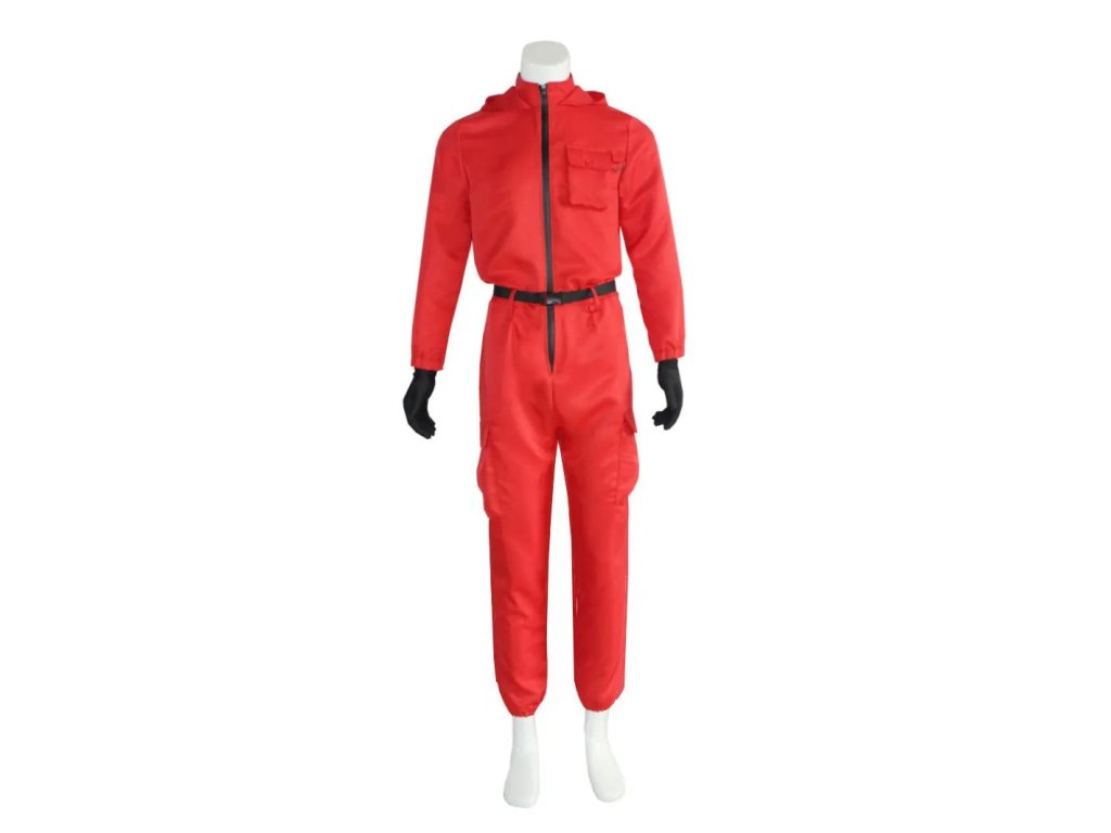 Tento kostým je vernou replikou uniformy, ktorú nosia strážcovia dohliadajúci na priebeh hier. Červený overal s kapucňou a čierna maska s geometrickým symbolom sú charakteristickými prvkami, ktoré okamžite každý fanúšik rozpozná. Pripravte sa na to, že v tomto outfite budete pôsobiť nielen záhadne, ale aj nebezpečne autoritatívne.