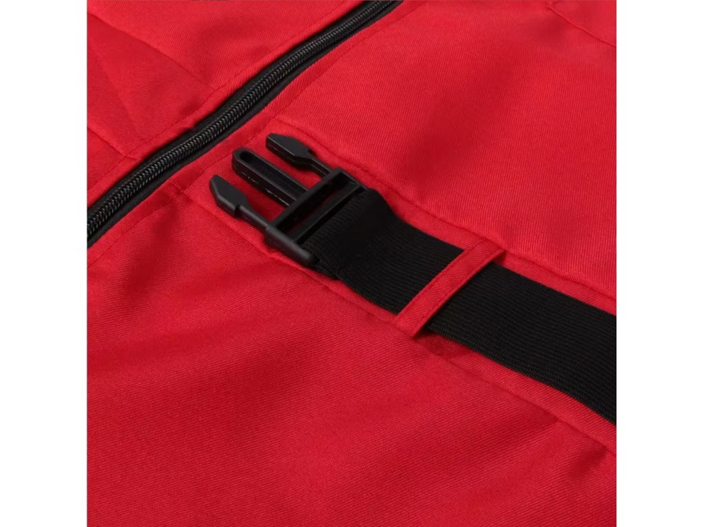 Overal je ušitý z kvalitného polyesterového materiálu, ktorý je ľahký, priedušný a pohodlný na celodenné nosenie. Vďaka zipsu po celej dĺžke sa ľahko oblieka aj vyzlieka, zatiaľ čo čierny opasok v oblasti pásu zabezpečuje prispôsobenie a optické zvýraznenie siluety. Manžety rukávov i nohavíc sú pružné a poskytujú komfort pri pohybe. Celkový dizajn rešpektuje jednoduché, ale výrazné línie pôvodného seriálového kostýmu. Súčasťou kostýmu je aj pár čiernych rukavíc, pre dokonalý komplet kostýmu.