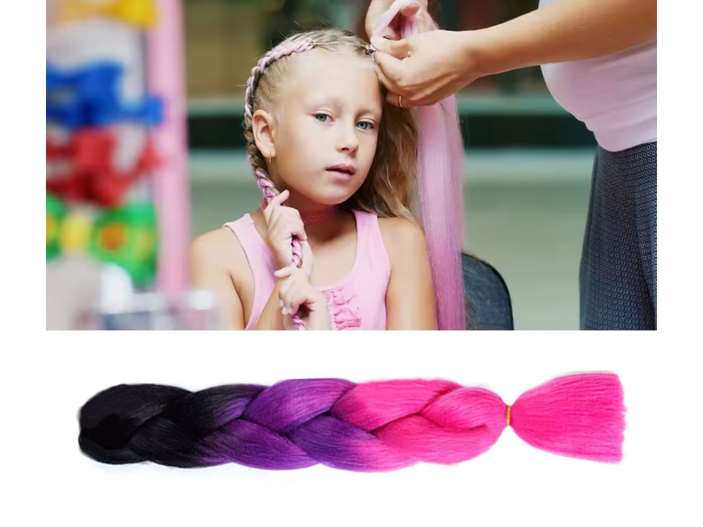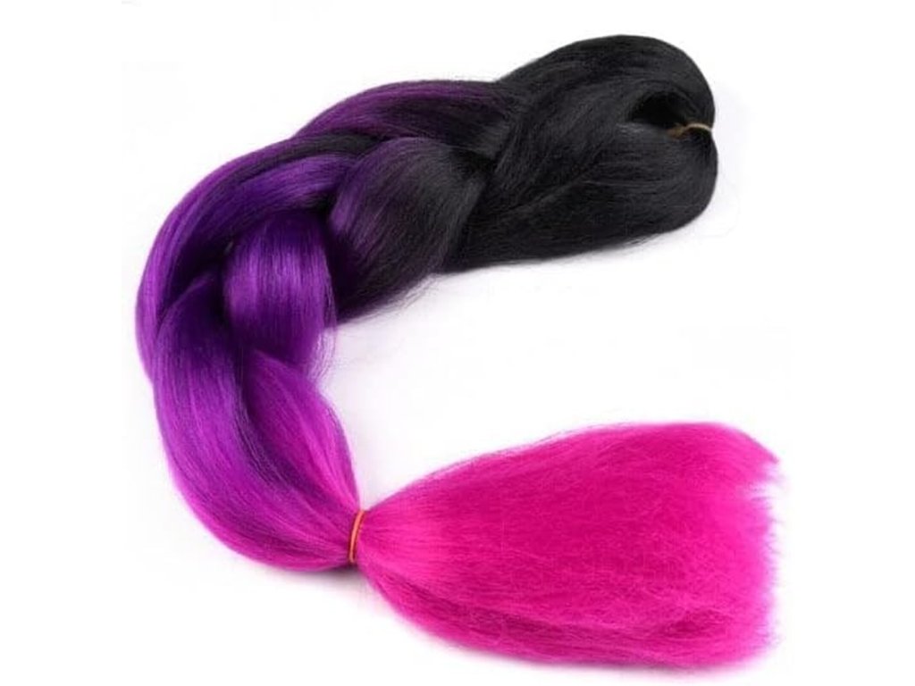 Pletený vrkoč Jumbo Unicorn s dĺžkou 60 cm je ideálny doplnok pre všetkých, ktorí chcú svojmu účesu dodať výnimočný farebný efekt. Jeho plynulý prechod z tmavej čiernej cez fialovú až po neónovo ružovú a koralovú farbu vytvára efekt duhovej hrivy – presne ako u jednorožca.