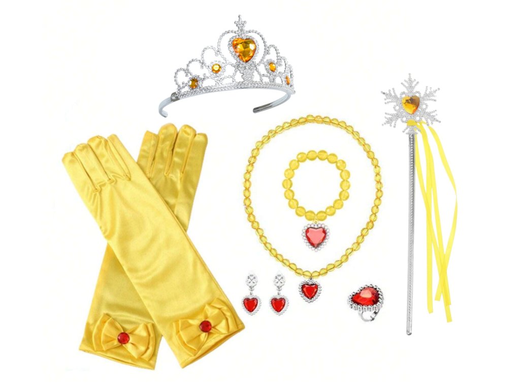 Súprava Žltá pelerína so šperkami a rukavicami 10ks