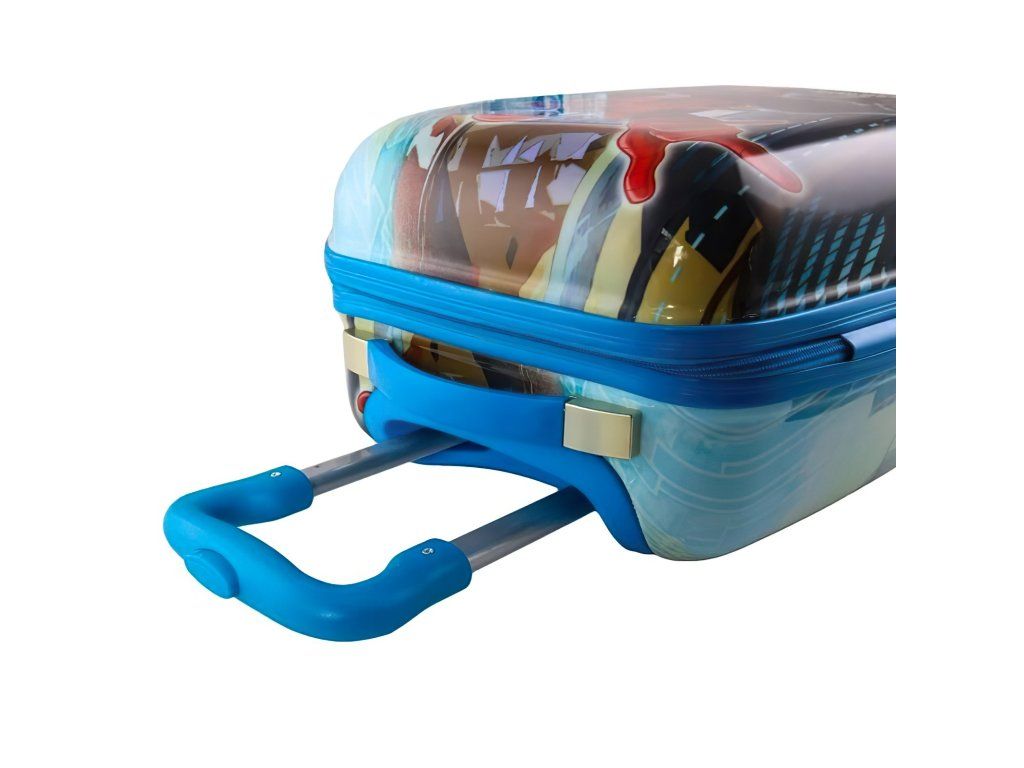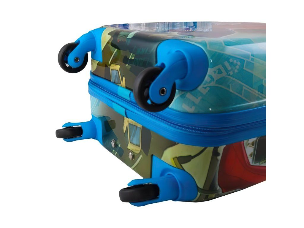 Uzatváranie je riešené zipsami z oboch strán, ktoré zaisťujú bezpečné uzavretie a ochranu vecí vo vnútri počas cesty a pri manipulácii s kufrom. Kufor je vybavený štyrmi otočnými kolieskami, ktoré uľahčujú manipuláciu. Teleskopická rukoväť je ďalším prvkom, ktorý uľahčí používanie kufra a umožní ľahké ovládanie aj tým najmenším. Celková konštrukcia je navrhnutá tak, aby spĺňala potreby malých cestovateľov. Využíva bezpečné odolné materiály, ktoré zaisťujú dlhú životnosť a bezproblémové používanie. Kufor je vyrobený z kvalitného ABS plastu a polykarbonátu, ktoré odolávajú poškodeniu. Povrch chráni pred poškriabaním tenká priehľadná fólia, ktorú treba pred prvým použitím odstrániť.