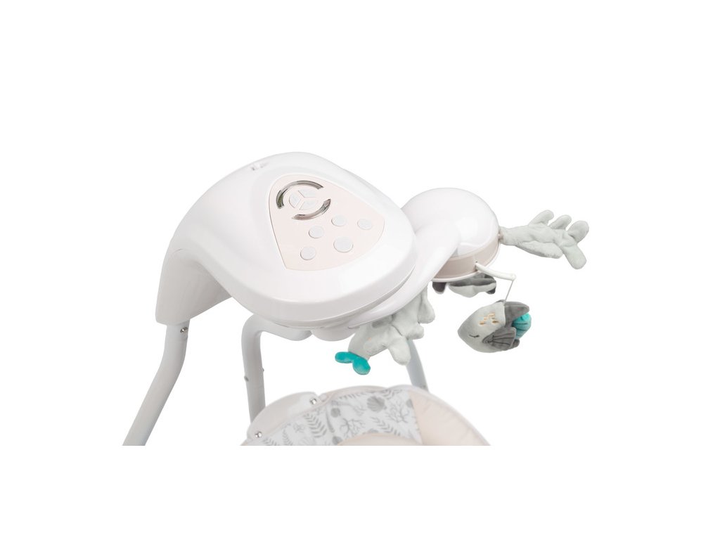 Ovládací panel ponúka 5 nastavení rýchlosti a nastavenie časovača. Hojdačka ponúka 11 melódií a zvukov prírody vrátane tečúcej vody a spevu vtákov, ktoré pomáhajú pri relaxácii a zaspávaní. |