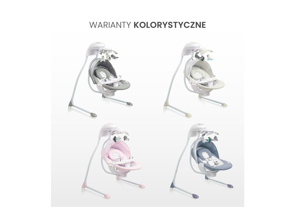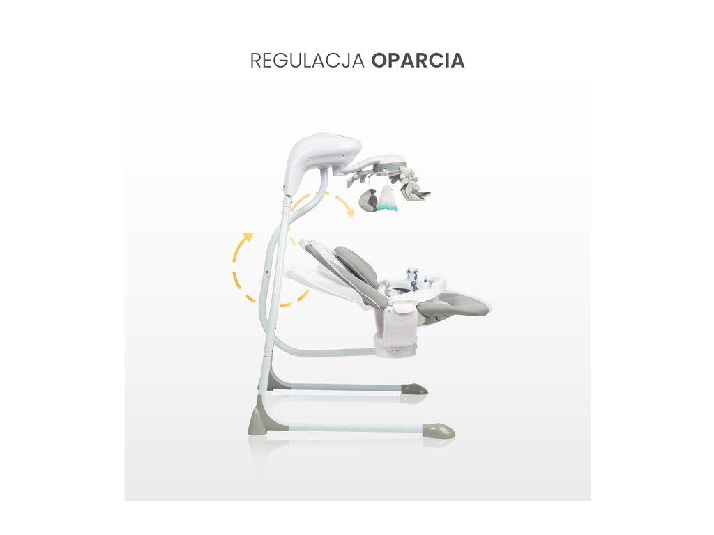 Dvojstupňové nastavenie sklonu operadla umožňuje umiestnenie dieťaťa do ležiacej alebo pololežiacej polohy. Hojdačka zaisťuje správne držanie tela dieťaťa a použité materiály sú šetrné k jeho pokožke.