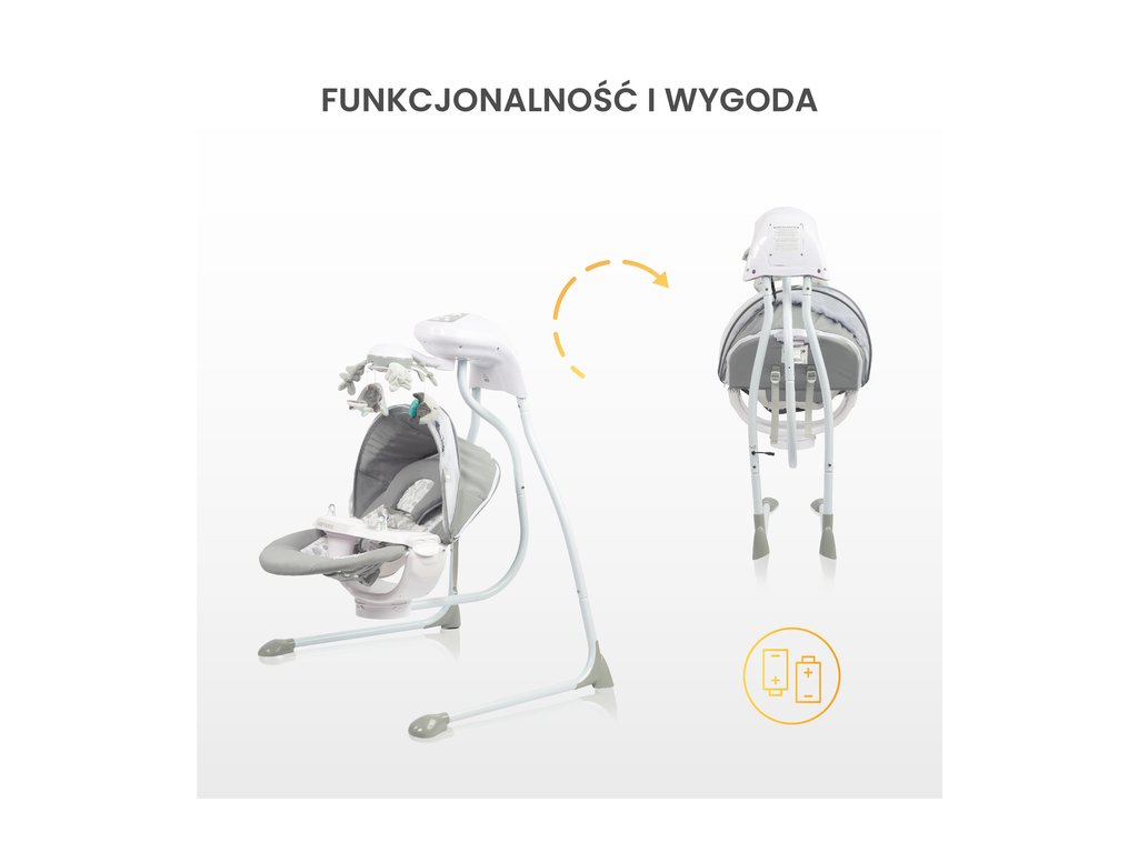 Kompaktný dizajn a možnosť skladania hojdačky uľahčujú jej prepravu a skladovanie. Navyše, jej napájanie z batérie umožňuje použitie kdekoľvek v domácnosti bez potreby elektrickej zásuvky. |