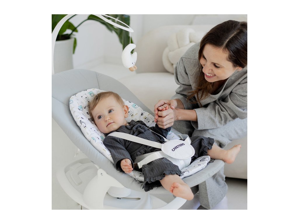 Pre zaistenie bezpečnosti najmenších je model Noco vybavený bezpečnostnými pásmi, ktoré zabraňujú vypadnutiu dieťaťa z polohovacieho kresla. Funkcia detekcie pohybu automaticky prispôsobí činnosť hojdačky potrebám dieťaťa a upokojí ho v chvíľach nepokoja.