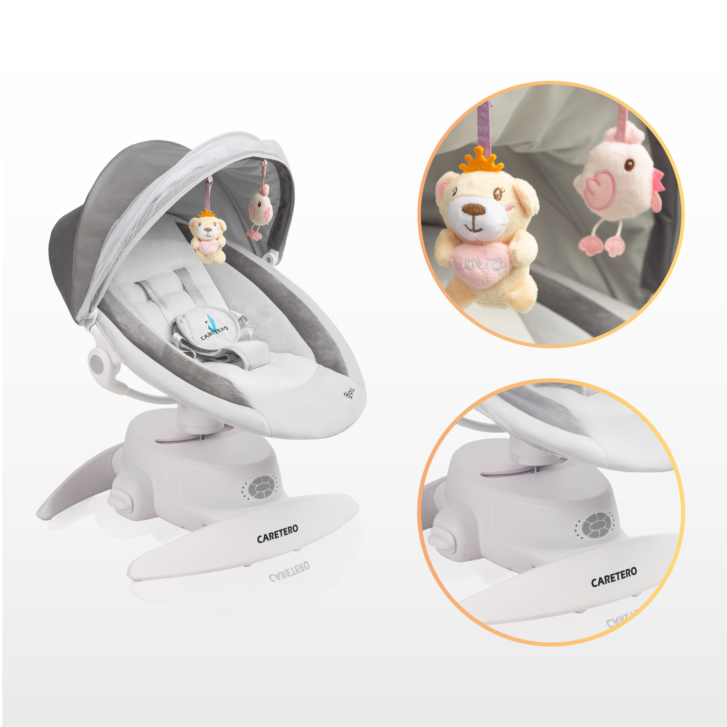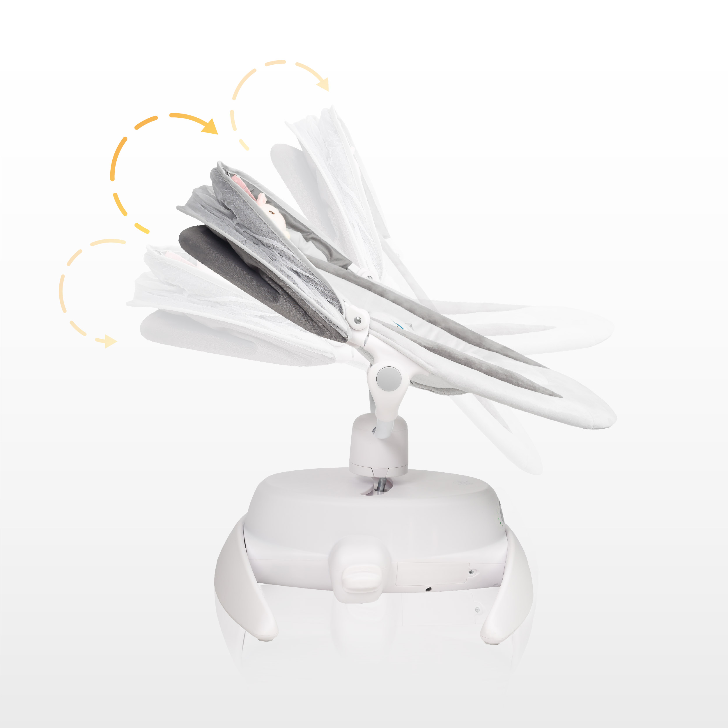 Opti ponúka tri rôzne režimy hojdania: zadnú časť, celé hojdadlo a prednú časť, čím poskytuje komplexnú a personalizovanú zábavu pre dieťa. Nastavenie rýchlosti hojdania umožňuje prispôsobiť pohyb potrebám dieťaťa - od jemného hojdania až po rýchle upokojenie.