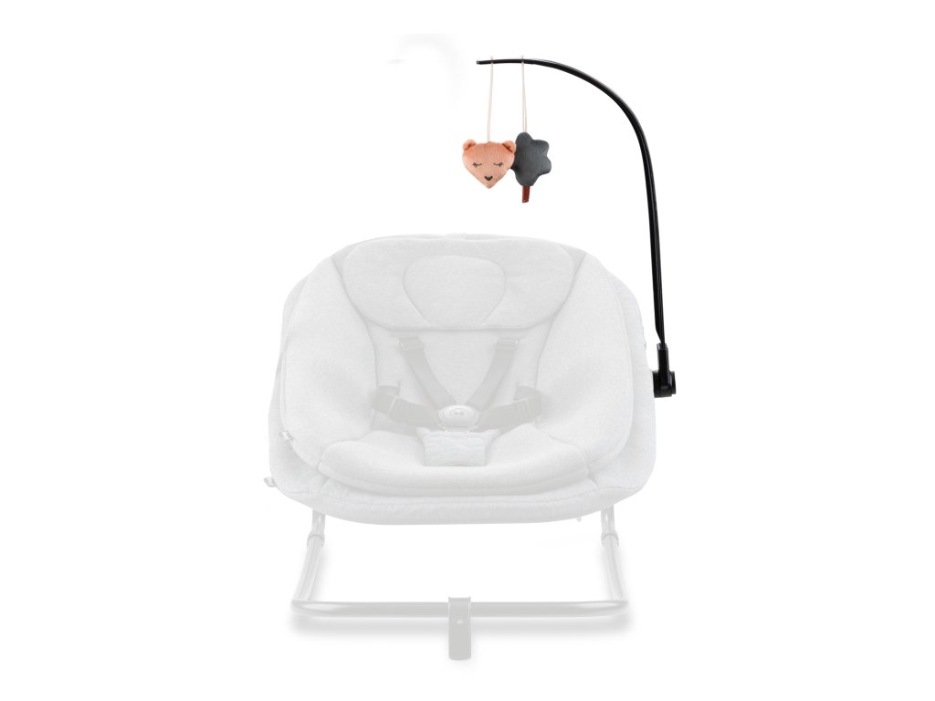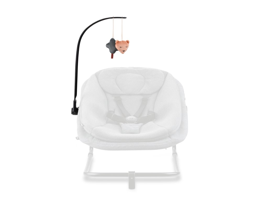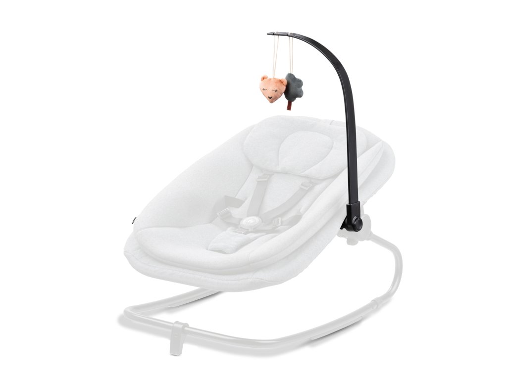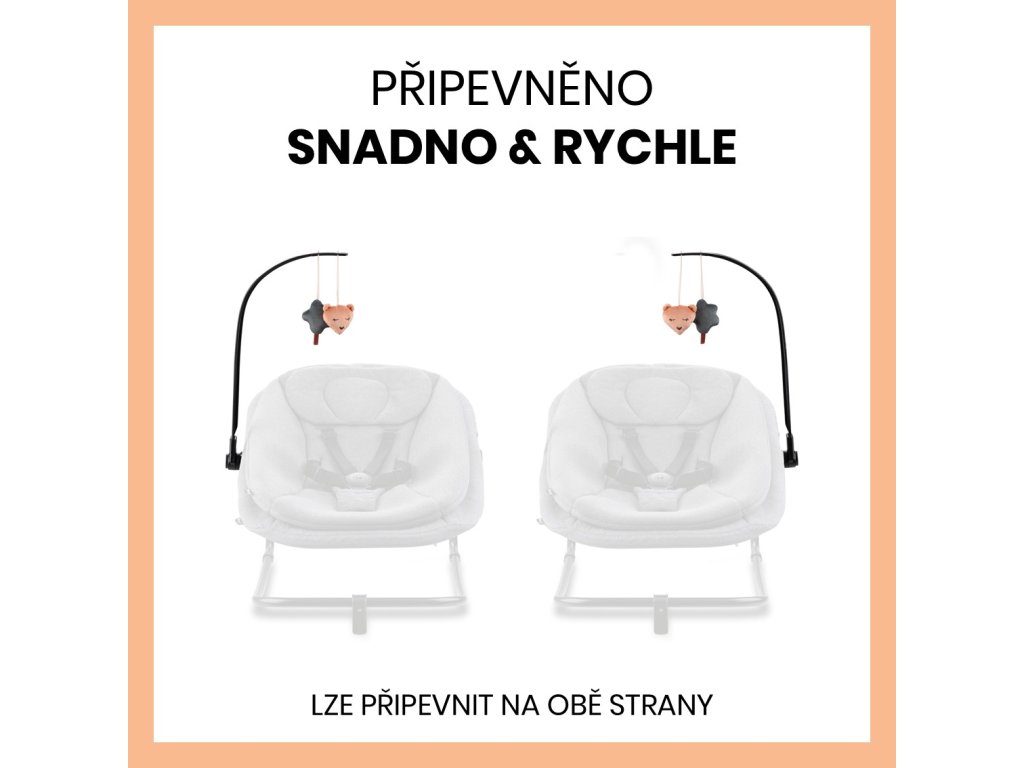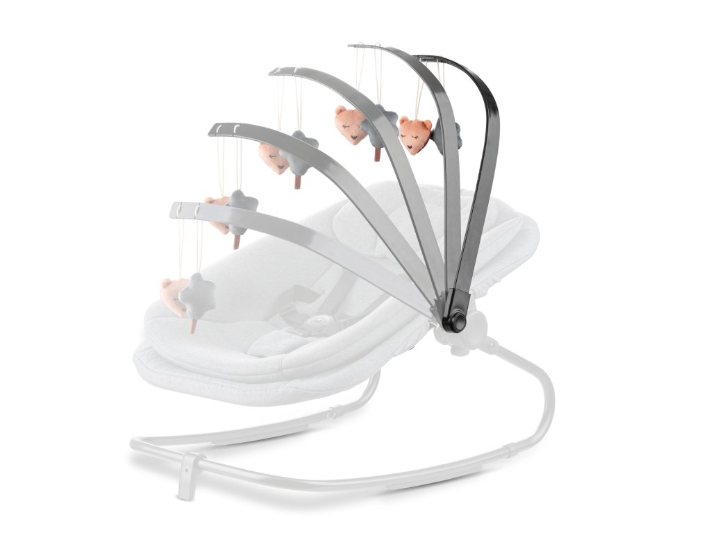 Hrací oblúk je možné pripevniť k obom stranám kresielka bez nutnosti použitia akéhokoľvek nástroja a rovnako tak ho možno v prípade potreby ľahko odňať. Oblúk je možné polohovať do 5 pozícií, môžete tak ľahko priblížiť alebo oddialiť hračky alebo si urobiť viac miesta na uloženie dieťatka.