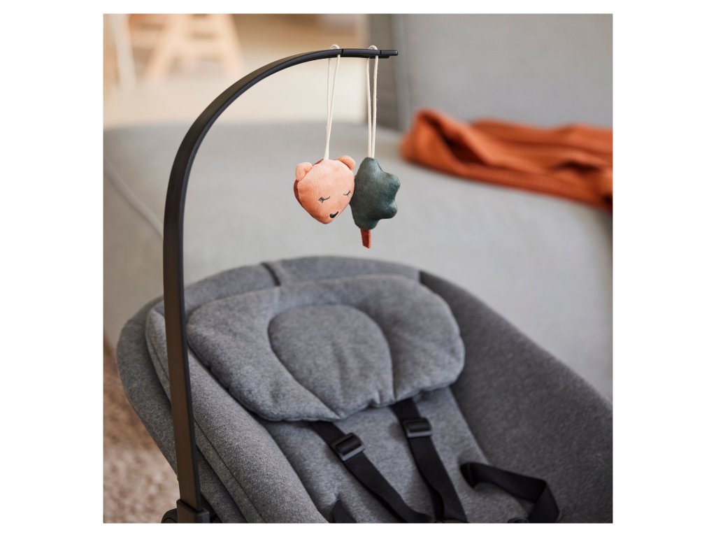 BEZPEČNÉ MIESTEČKO PRE MALÝCH PRIESKUMNÍKOV // S hracím oblúkom vo svojom obľúbenom kresielku môže vaše dieťatko preskúmavať svet okolo seba. Pískací medvedík a hrkajúci stromček podporujú motorické schopnosti zábavou formou.