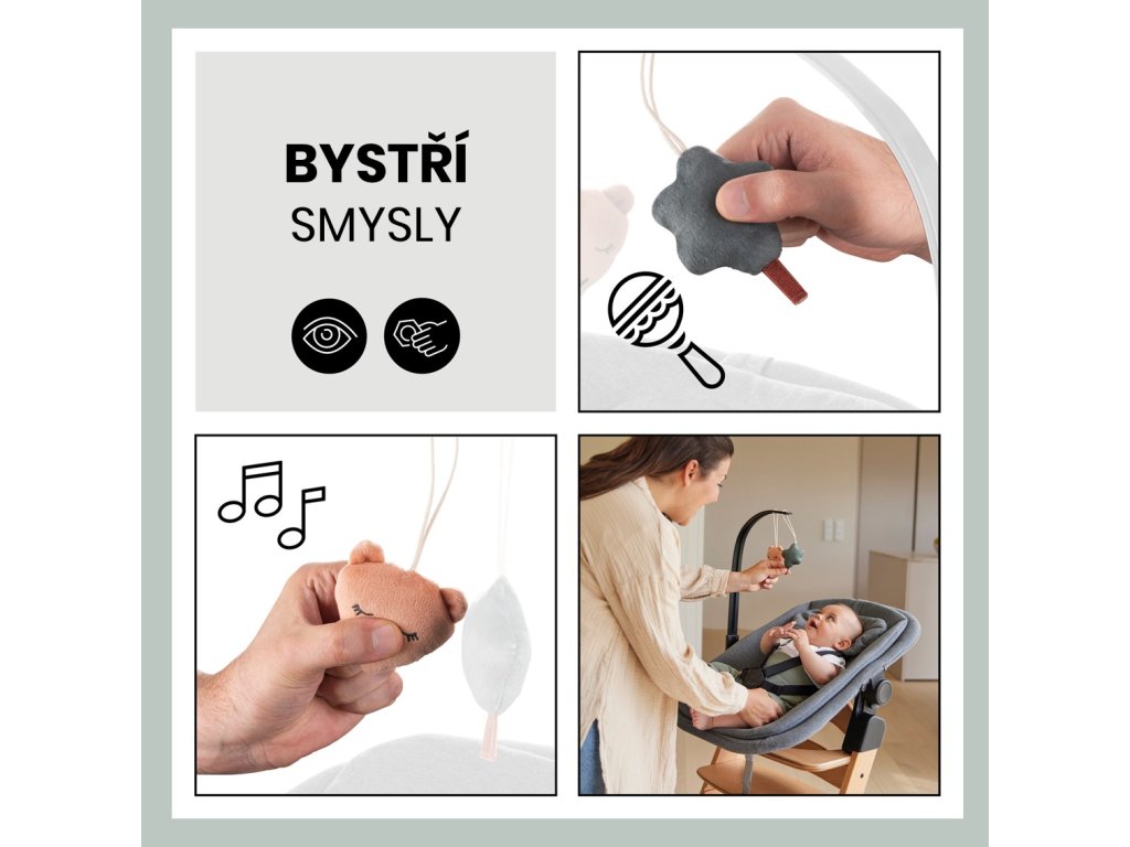 Ak ste si zaobstarali kresielko BOUNCER 3v1, bude sa vám k nemu perfektne hodiť tento hrací oblúk. Vaše dieťatko sa tak bude môcť hrať vo svojom známom prostredí a bezpečne v ňom objavovať svet okolo seba už od prvých dní.