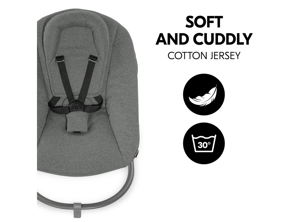 MÄKKÝ A PRÍJEMNÝ MATERIÁL PRE DOBRÝ POCIT // Poťah kresielka je vyrobený z príjemného priedušného bavlneného materiálu. Jemný materiál je obzvlášť šetrný k detskej pokožke. Poťah je možné ľahko sňať a v prípade potreby vyprať na 30 °C.