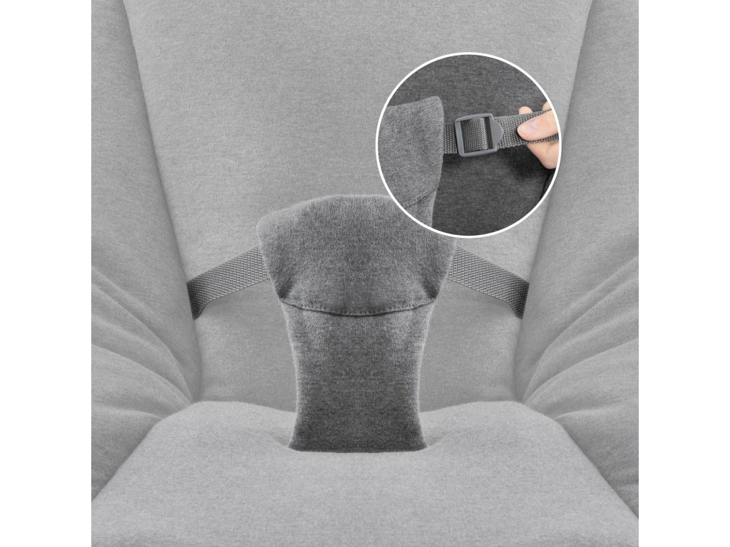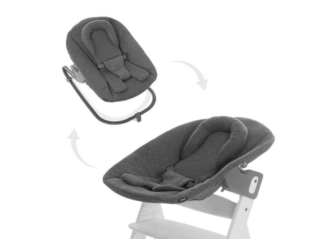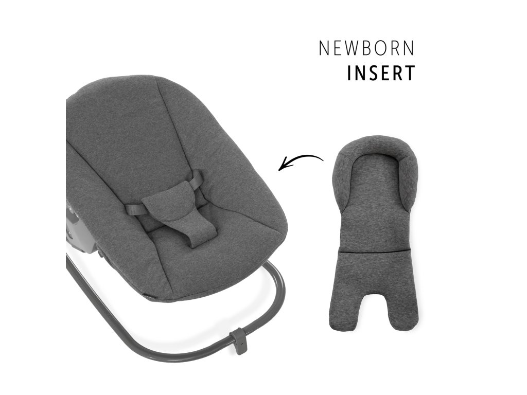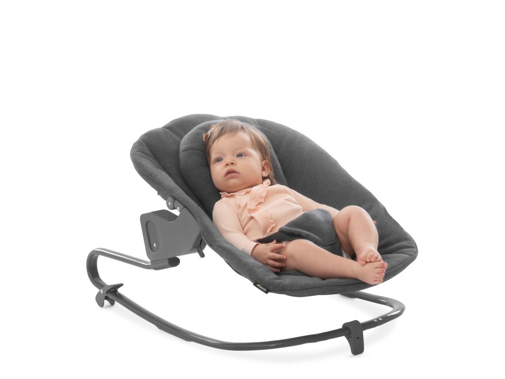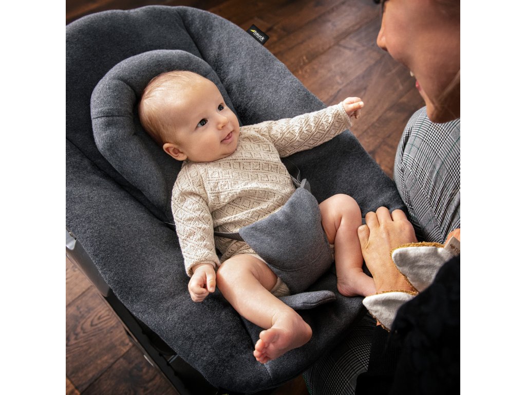 Pre novorodenca použite mäkké vnútorné prídavné polstrovanie sedátka so zosilnenou opierkou hlavy. Polstrovaný 3-bodový pás bábätko dokonale zabezpečí. Pokiaľ si dieťatko žiada zmenu, je možné nástavec pre novorodenca jednoducho upevniť na hojdací stojan a razom sa pomocou niekoľkých ťahov vykúzli prémiová kolíska, ktorá sa môže buď hojdať spolu s prirodzenými pohybmi bábätka, alebo sa jednoducho zaistí.