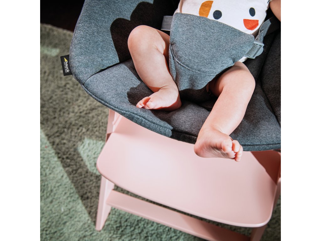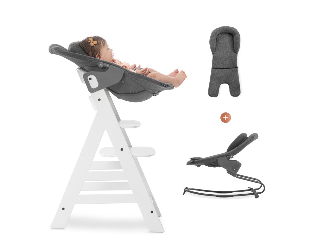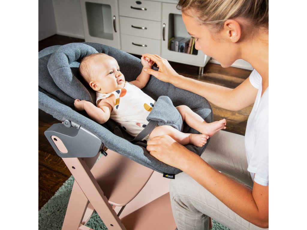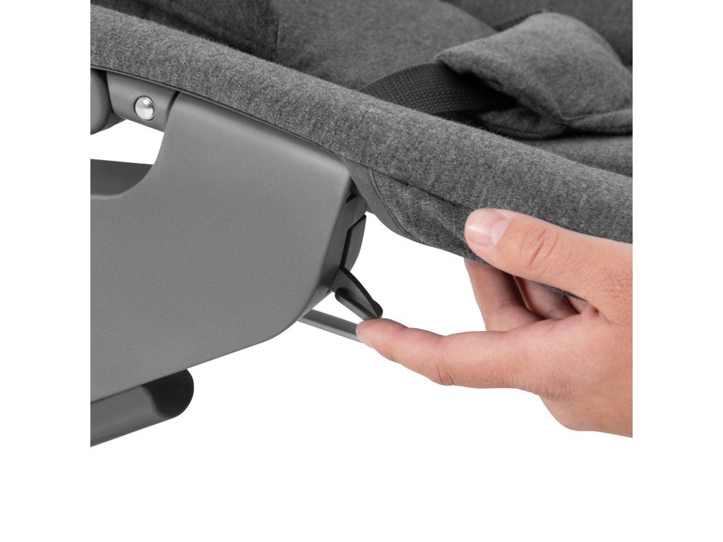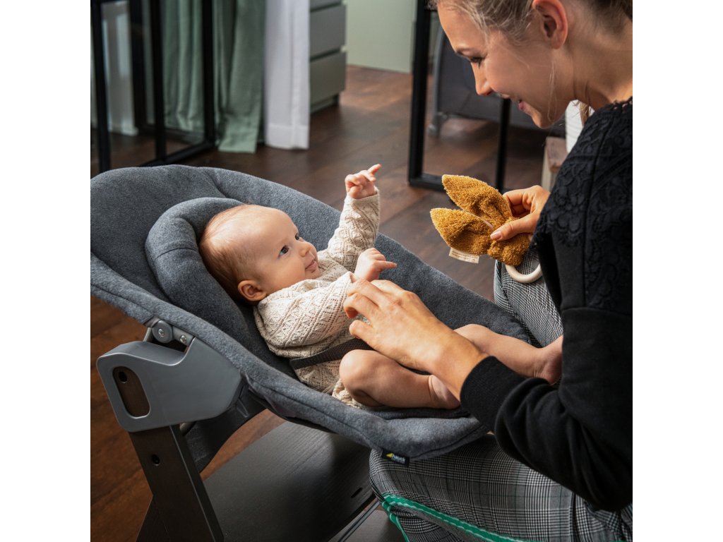 Pre novorodenca použite mäkké vnútorné prídavné polstrovanie sedátka so zosilnenou opierkou hlavy. Polstrovaný 3-bodový pás bábätko dokonale zabezpečí. Pokiaľ si dieťatko žiada zmenu, je možné nástavec pre novorodenca jednoducho upevniť na hojdací stojan a razom sa pomocou niekoľkých ťahov vykúzli prémiová kolíska, ktorá sa môže buď hojdať spolu s prirodzenými pohybmi bábätka, alebo sa jednoducho zaistí.