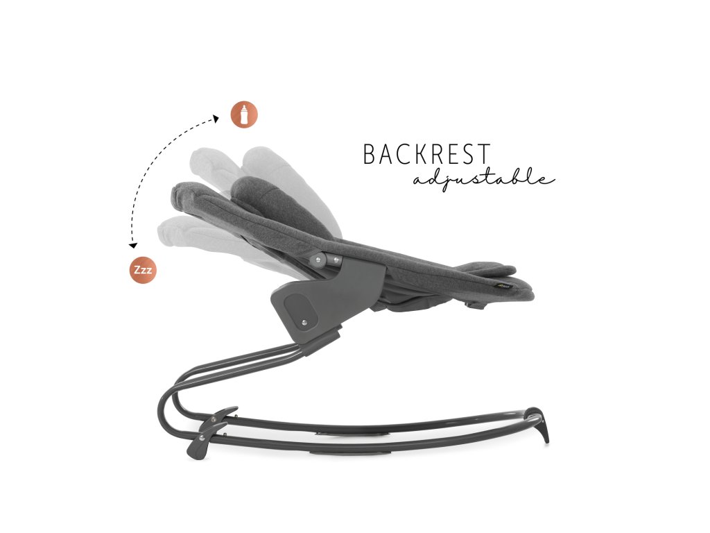 Flexibilný hojdací stojan je súčasťou balenia. Pokiaľ sa tento produkt skombinuje s detskou jedálenskou stoličkou ALPHA+, môže s vami bábätko "stolovať" už od narodenia. Vďaka tomu zažijete prekrásne rodinné chvíľky a zároveň docielite pohodlné kŕmenie vášho bábätka bez toho, aby ste namáhali Váš chrbát. Chrbtovú opierku je možné sklopiť jednou rukou až do polohy v ľahu.