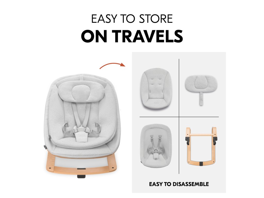 JEDNODUCHÉ ULOŽENIE NA CESTU // Chcete si svoje kresielko vziať so sebou? Nie je problém. Kresielko sa dá jednoducho zložiť – po odobratí hornej časti môžete kresielko zložiť do kompaktných rozmerov – ideálne k babičke či na dovolenku.