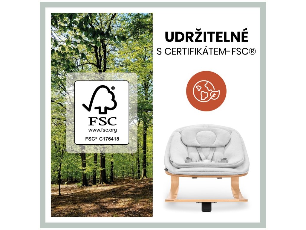 Preto sa rám kresielka vyrába z certifikovaného európskeho bukového dreva. Certifikácia materiálu FSC® zaručuje udržateľné využívanie lesov a ochranu zvierat a rastlín.