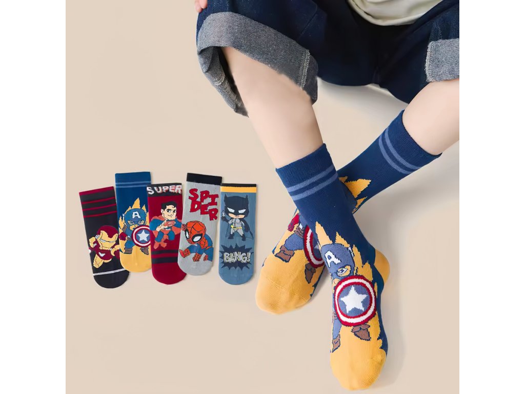 Balenie obsahuje päť rôznych párov ponožiek s obľúbenými postavami ako Iron Man, Kapitán Amerika, Superman, Spiderman a Batman. Každý pár je farebne výrazný a ľahko rozpoznateľný, čo deťom uľahčí samostatné obliekanie.