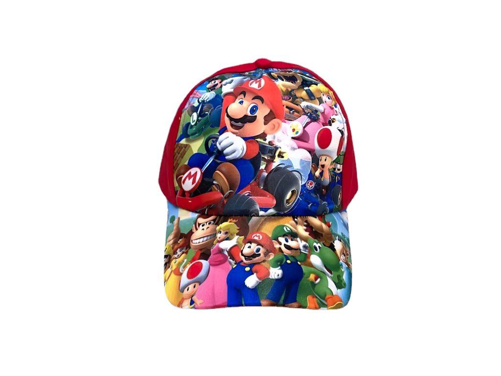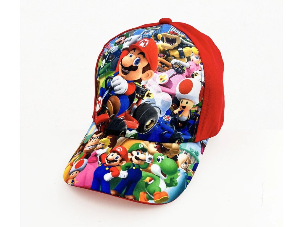 Na prednej časti čiapky dominuje Mario v závodnej motokáre, obklopený ďalšími ikonickými postavičkami ako Luigi, Yoshi, Toad alebo Princezná Peach. Vďaka pestrofarebnému a detailnému dizajnu sa čiapka ľahko stane obľúbeným doplnkom každého malého hráča.
