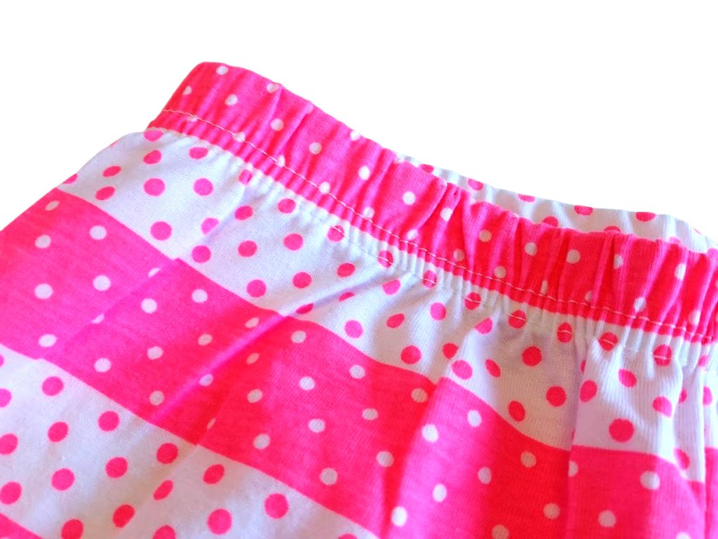 Dizajn pyžama kombinuje biely podklad s ružovými bodkami a výrazné ružovo-biele pruhy na rukávoch a nohaviciach. Hlavným motívom je veselá Minnie s typickou mašľou, ktorá dodáva pyžamu hravý a roztomilý vzhľad. Vďaka pohodlnému strihu je obliekanie aj vyzliekanie jednoduché, čo ocenia nielen deti, ale aj rodičia.
