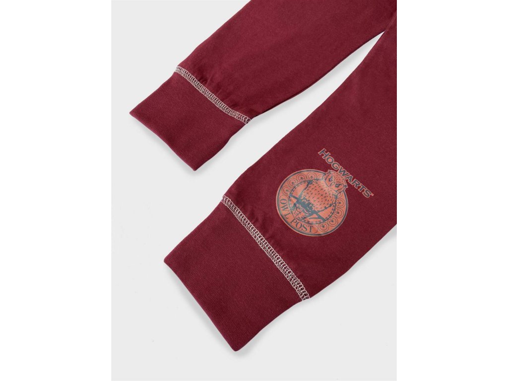 Spodný diel pyžama je v nádhernej bordovej farbe a je zdobený znakom Rokfortskej pošty. Tento detail krásne dopĺňa celý dizajn a zdôrazňuje kúzelný motív. Elastické manžety na nohaviciach zaisťujú, že pyžamo dobre sedí a poskytuje dostatočné pohodlie počas spánku i relaxu. Kvalitná potlač aj farby sú odolné a zachovajú si svoj magický vzhľad aj po mnohých praniach, takže deti môžu mať svoje obľúbené pyžamo stále ako nové.